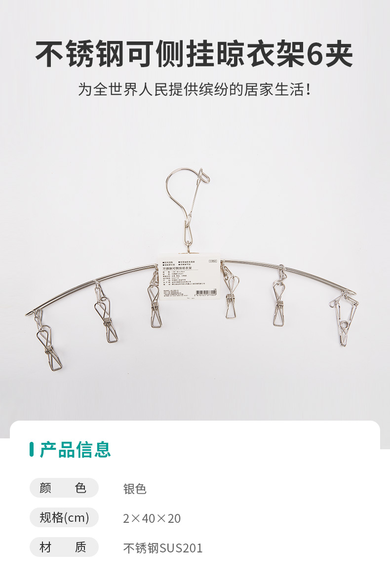 不锈钢可侧挂晾衣架6夹