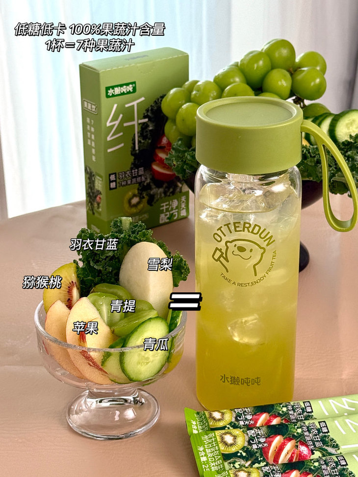 【水獭吨吨羽衣纤果茶】❗某茶纤体瓶平替❗✅替代高糖奶茶,7种果蔬风味好喝又健康✅7种果蔬+菊粉❗✅100%真果汁,满满膳食纤维