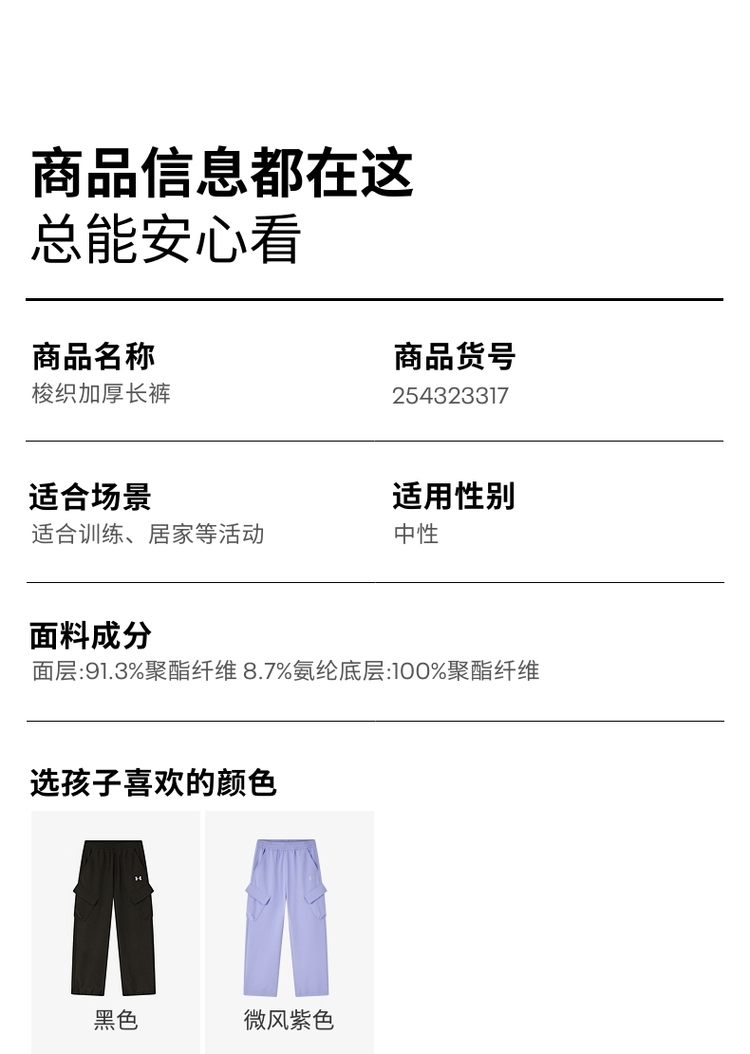 【特惠福利】Under Armour安德玛儿童梭织加厚长裤254323317