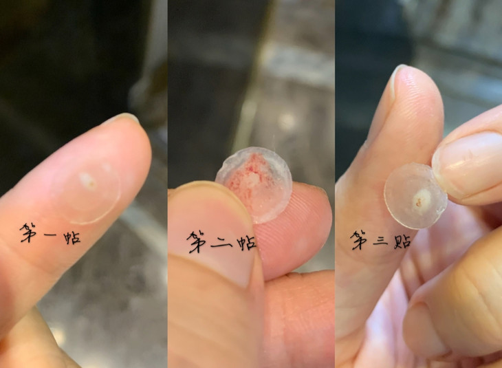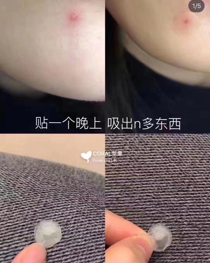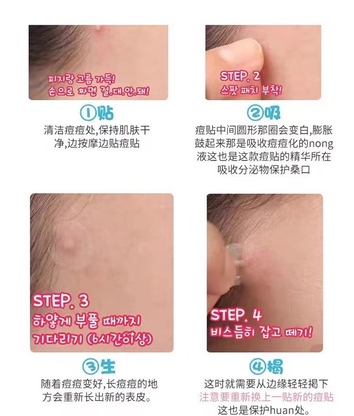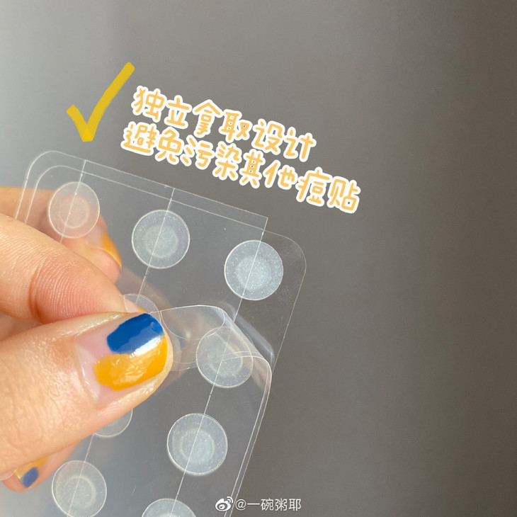 韩国敲火爆的痘痘贴! 去韩国经常看到女生脸上有贴圆圆的东西 其实就是这个痘痘贴了 毫不夸张的说几乎人手一包 采用亲水性凝胶材质灰常贴合!隐形!贴着不明显 粘腻性炒鸡强!遇水不会脱落 长脓包的痘用粉刺针挑破后贴上 隔天起来就可以看见痘贴上吸附很多浓汁 痘痘肖焱愈合平复了很多