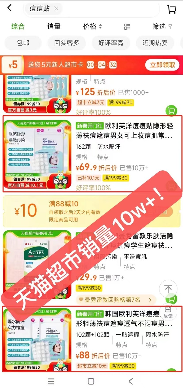 oliveyoung 对于红肿痘痘真的亲测有效✨ 贴上去它会把没成熟的痘痘里面的白色吸出来 加速愈合 也不容易留痘印 一袋162贴🛒