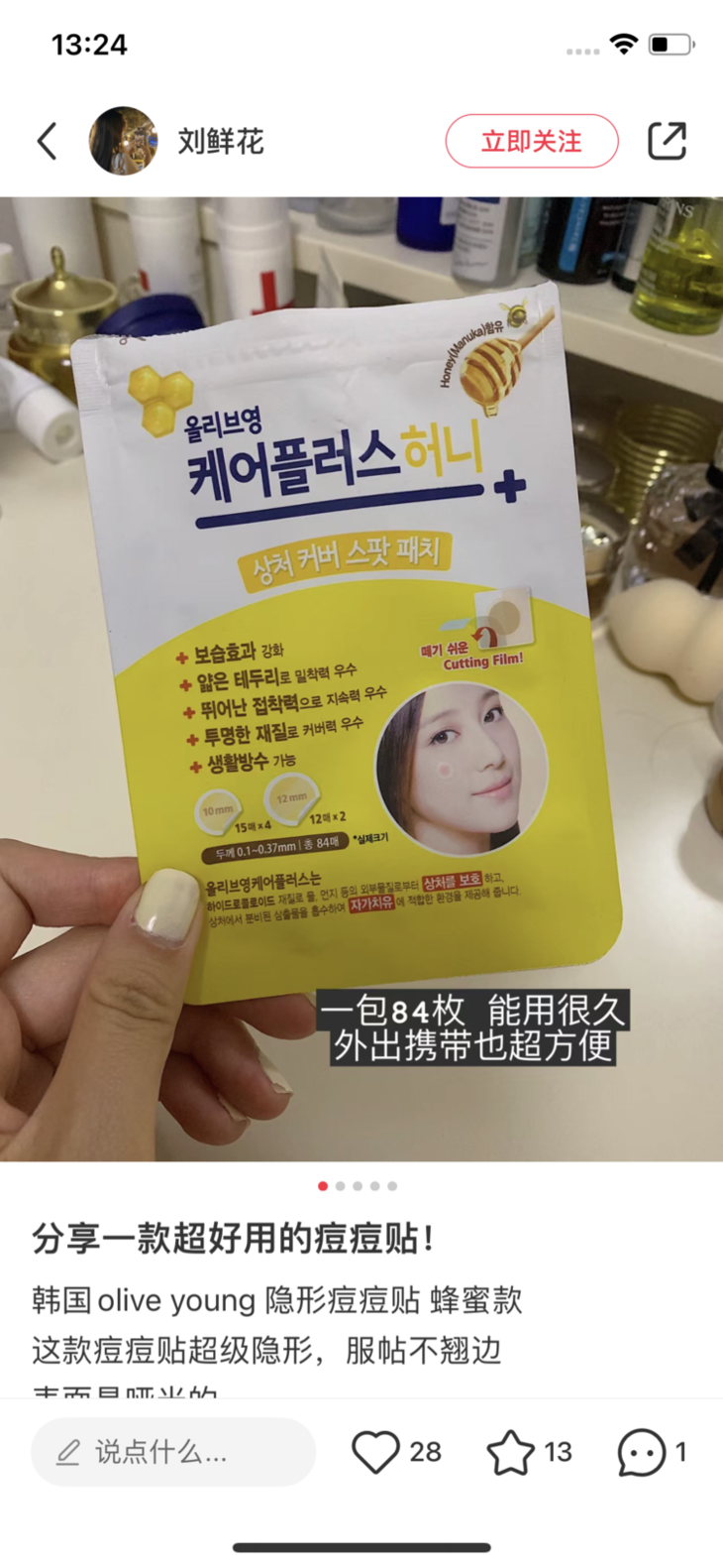 😍用过很多痘痘贴感觉都没有olive young的好 隐形度和服贴度都杠杠滴 贴一晚上就可以把痘痘里面白白的东西吸出来 之前小姐妹去韩国叫她给我带了好多 👍