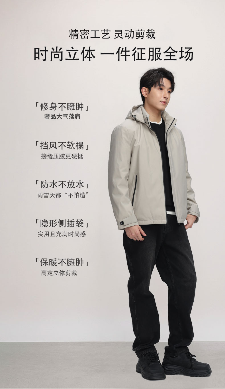【立体剪裁】个调 秋冬季轻薄男士可拆卸帽子羽绒服2111 黑色/藏青色/咖色/白灰色 (170-200)轻暖不压身