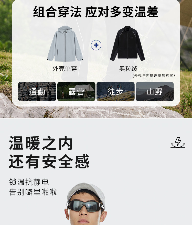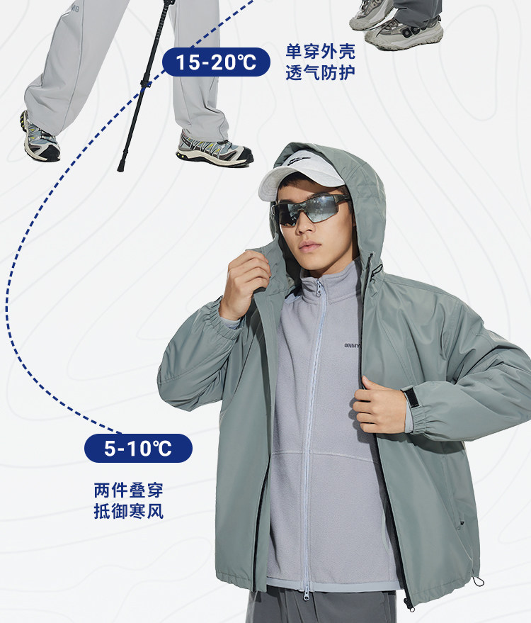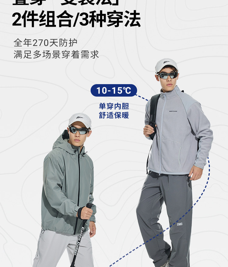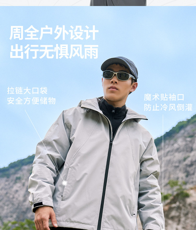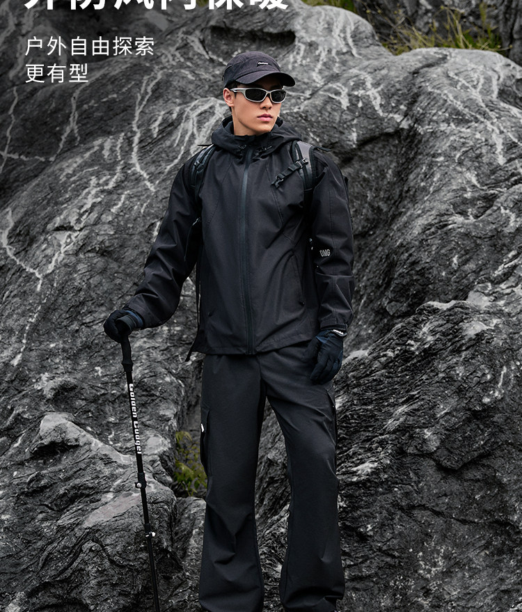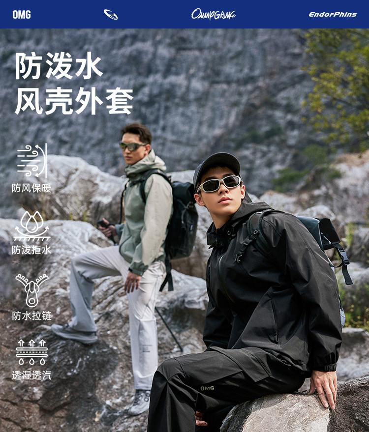 OMG运动 三防外套男士户外防泼水连帽秋冬季机能风防水防风夹克