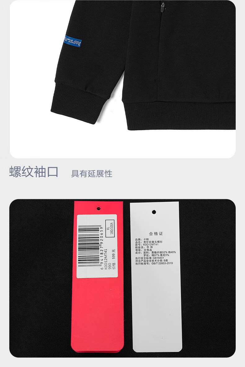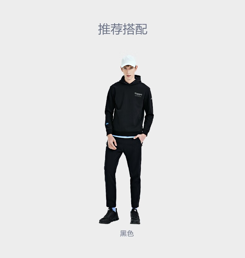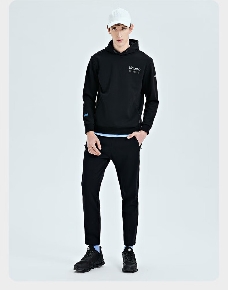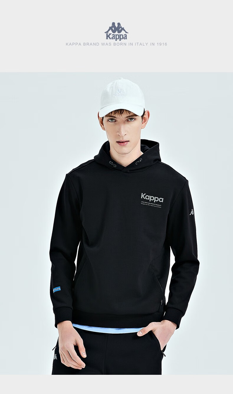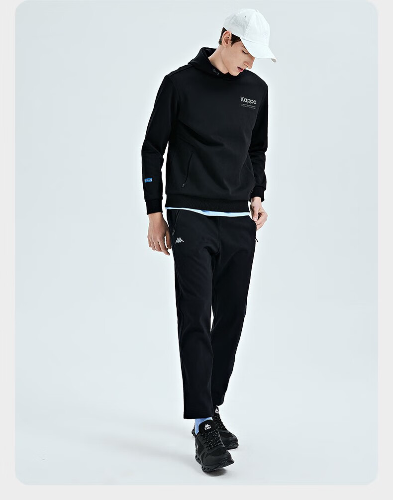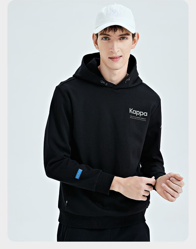 Kappa卡帕套头帽衫2023新款男运动卫衣休闲长袖外套针织印花上衣K0D12MT41