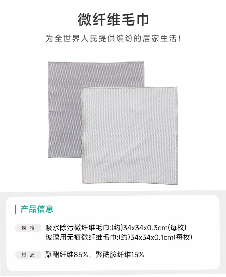 吸水除污微纤维毛巾/玻璃用无痕微纤维毛巾 灰色 2条装
