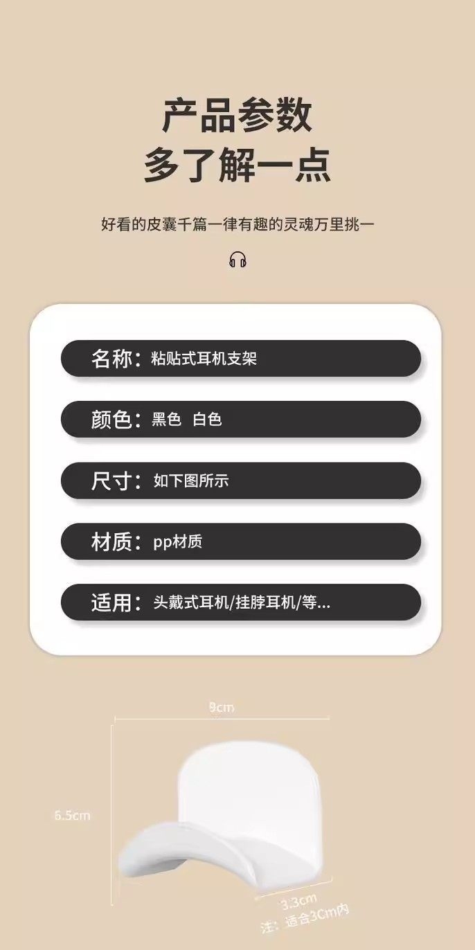 免打孔多功能壁挂防滑挂钩 耳机包包收纳置物架 黑色