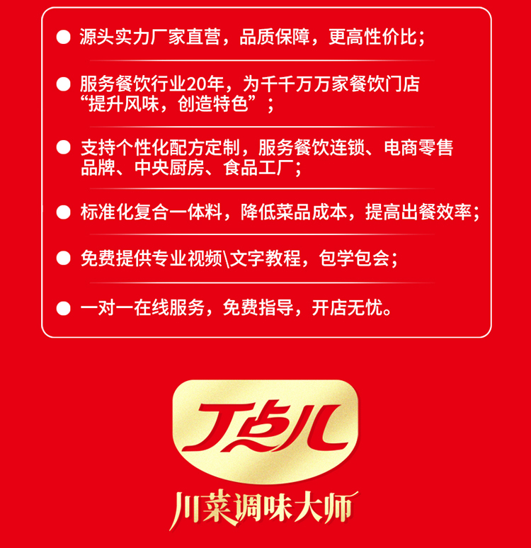 四川丁点儿食品开发股份有限公司,是集川菜调味料研发、生产、销售、服务为一体的现代化企业,专注为餐饮客户提供川菜调味解决方案。公司成立至今,服务了超百万家的餐饮门店以及连锁品牌。