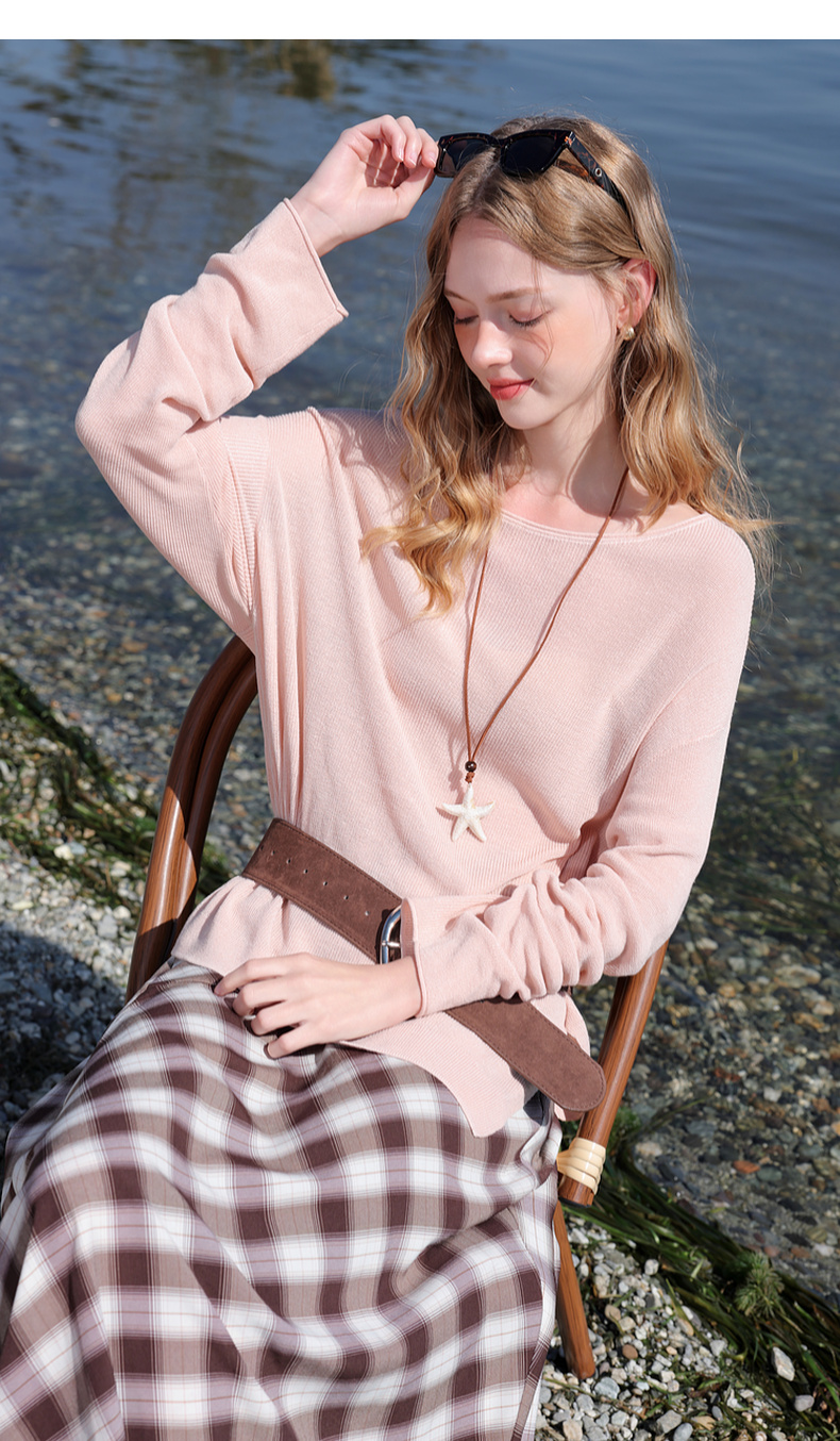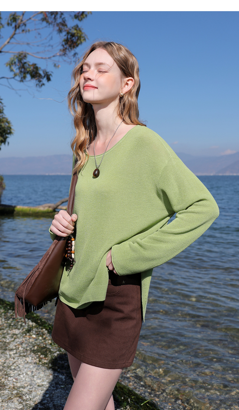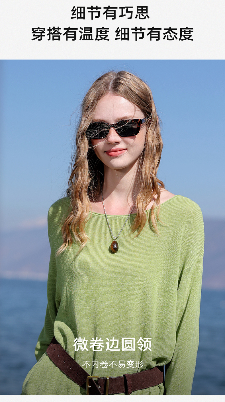 三彩2026春季新款莱赛尔针织衫圆领毛衫宽松落肩袖休闲M