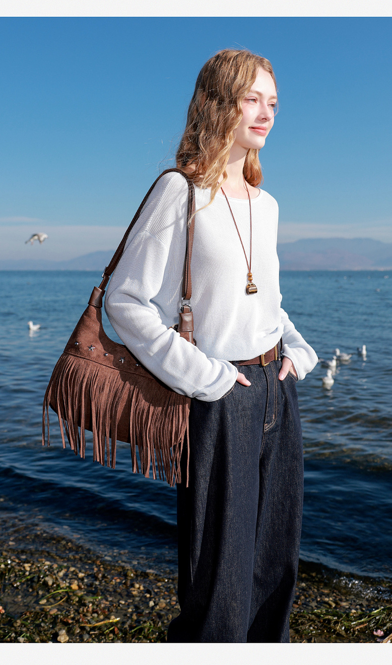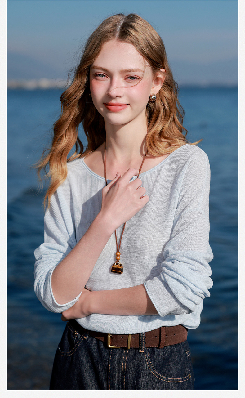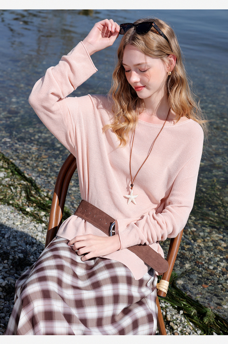 三彩2026春季新款莱赛尔针织衫圆领毛衫宽松落肩袖休闲M