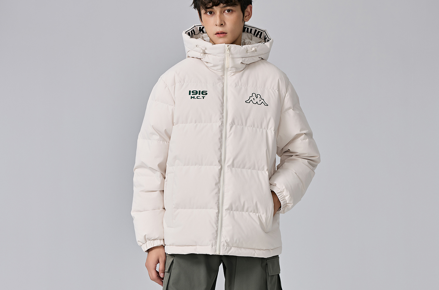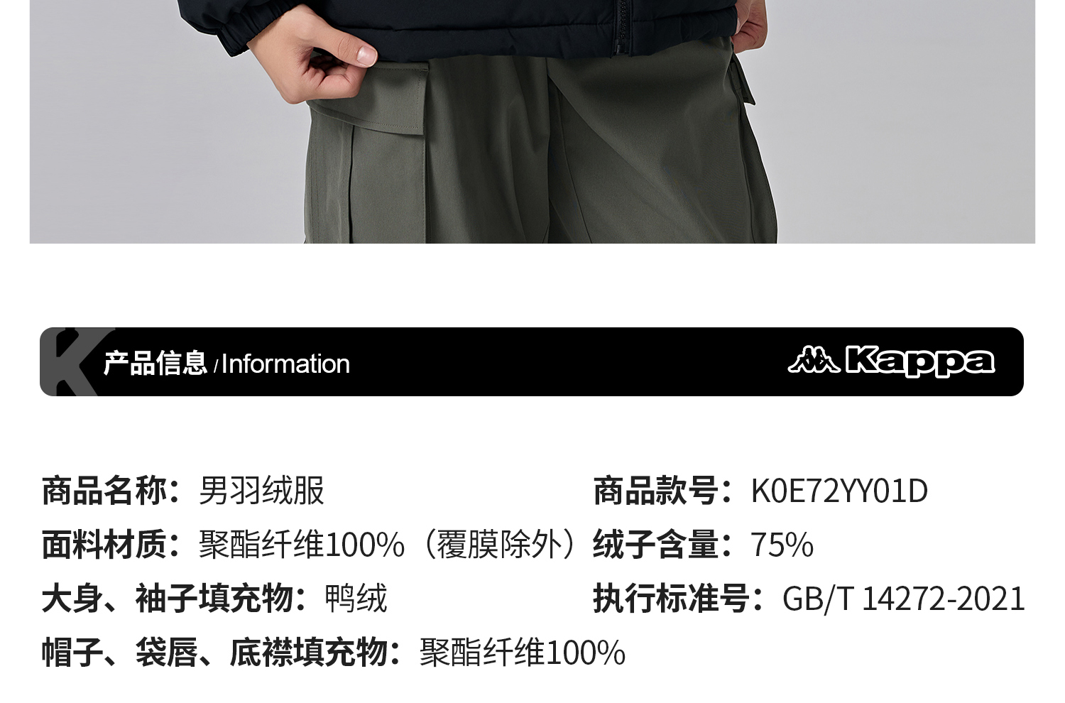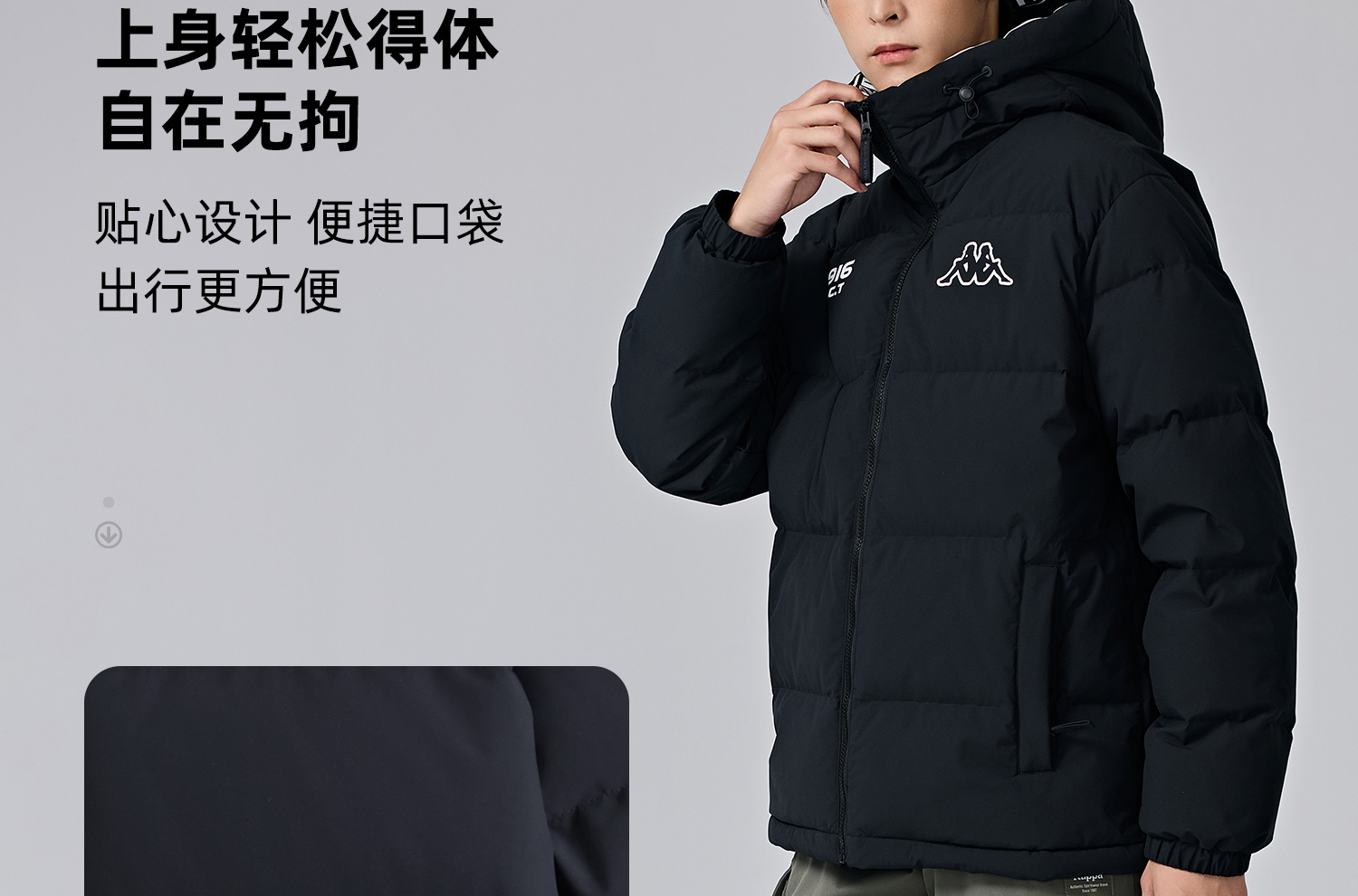 Kappa卡帕背靠背保暖羽绒服男2024新款户外连帽上衣运动外套男款K0E72YY01D