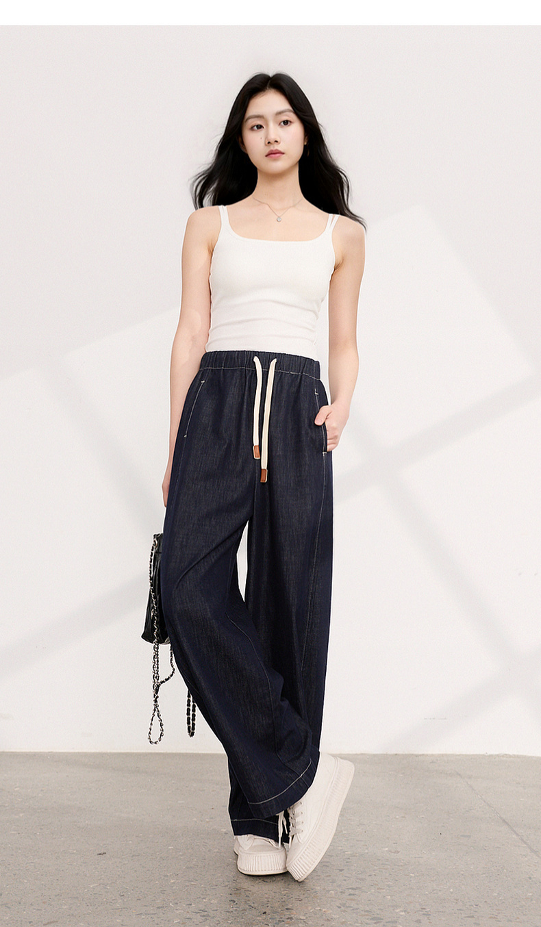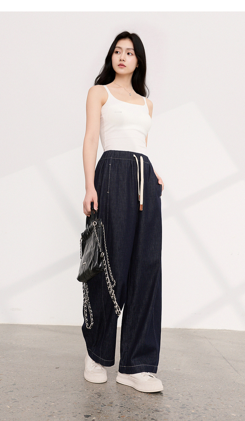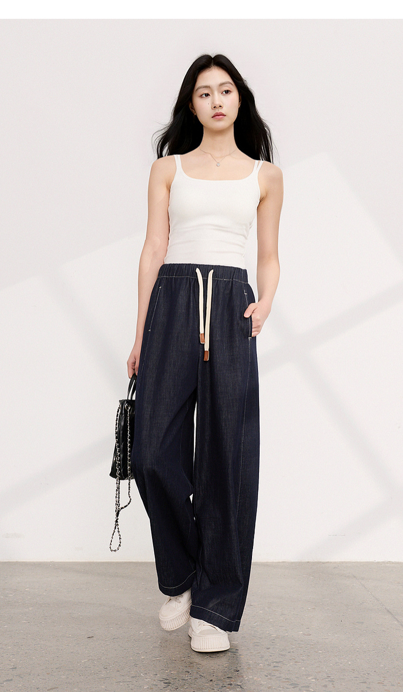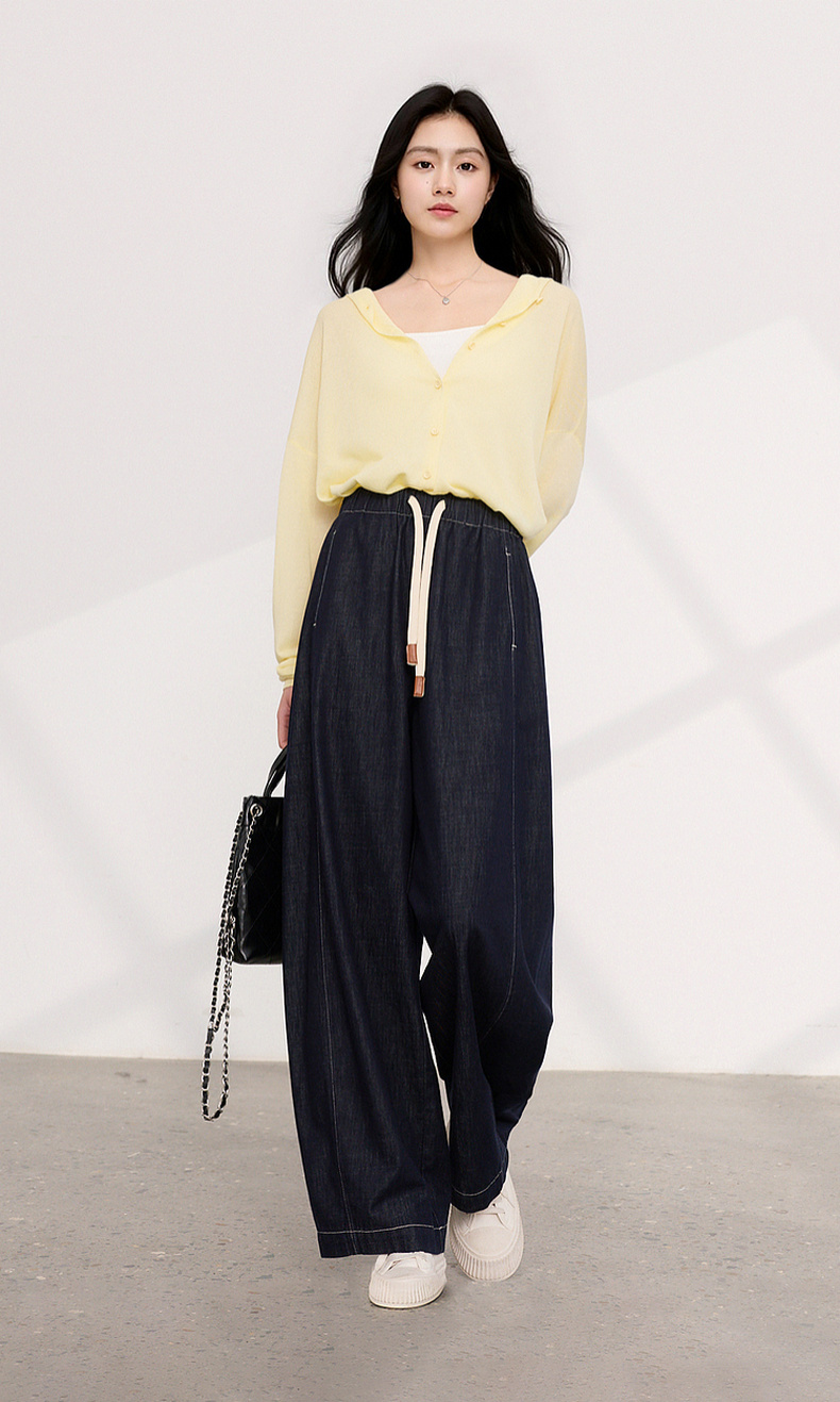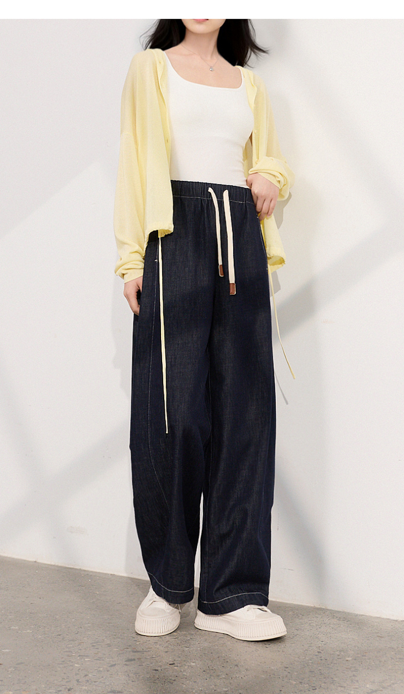 三彩2026夏季新款美式复古休闲裤牛仔裤高腰宽松气球裤九分裤M