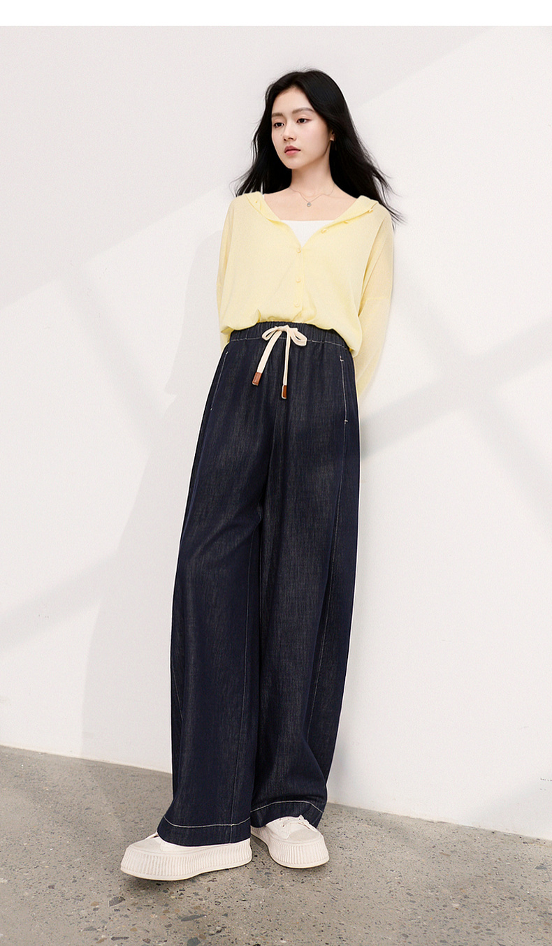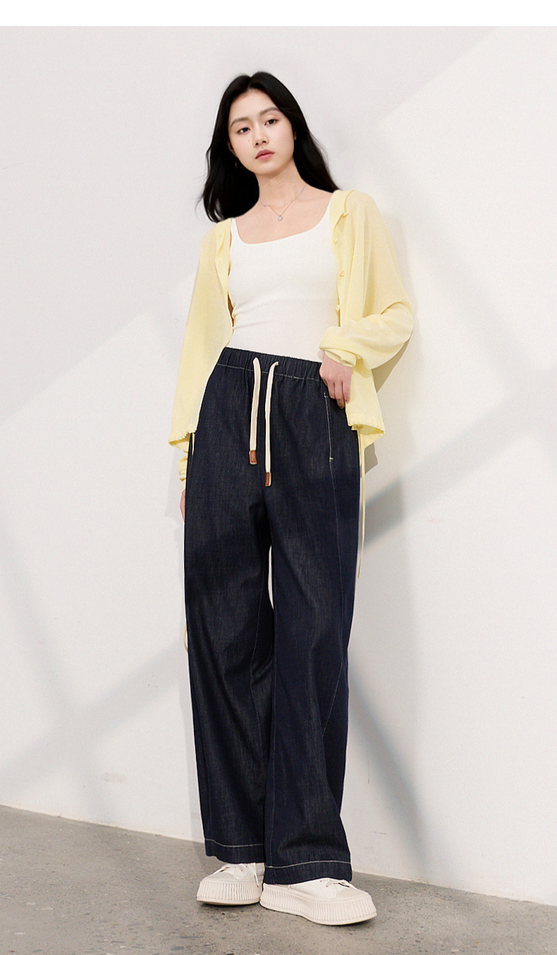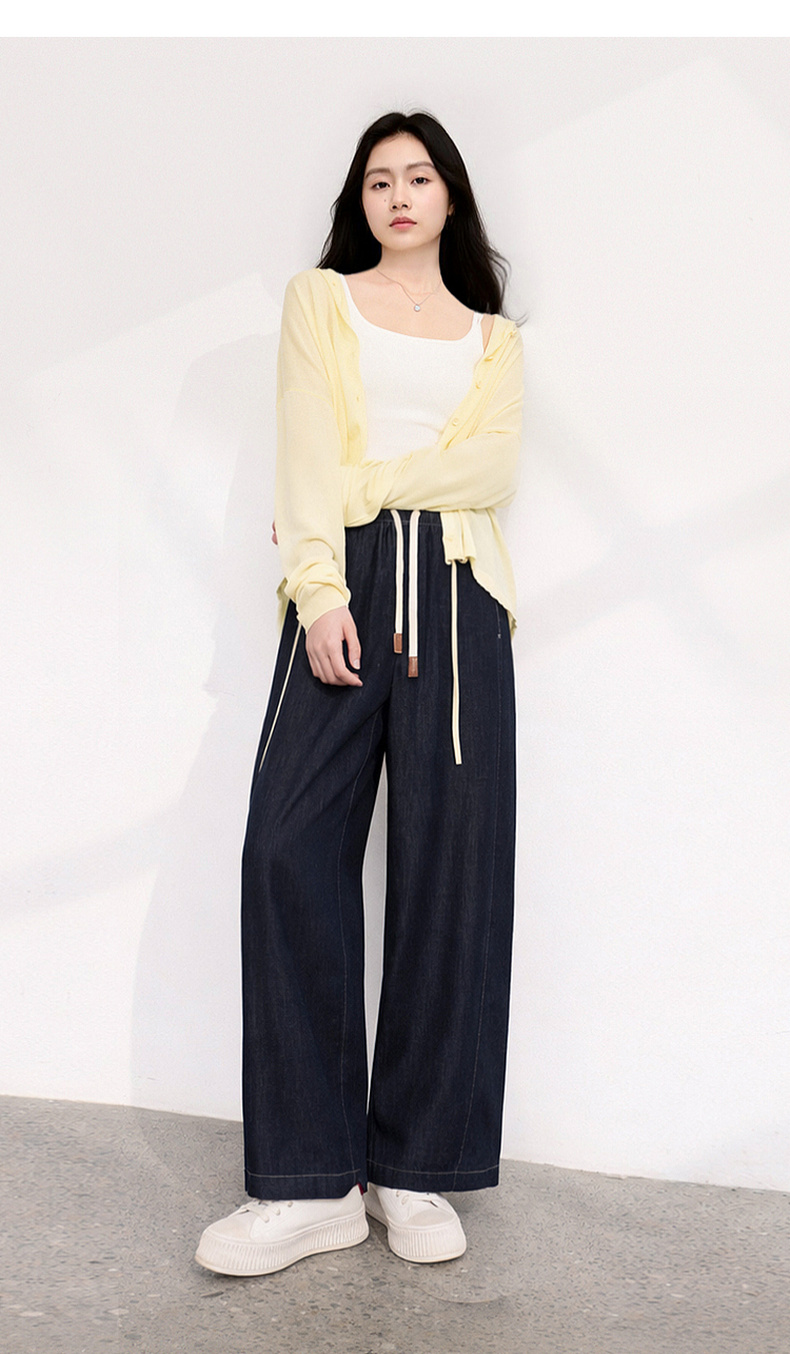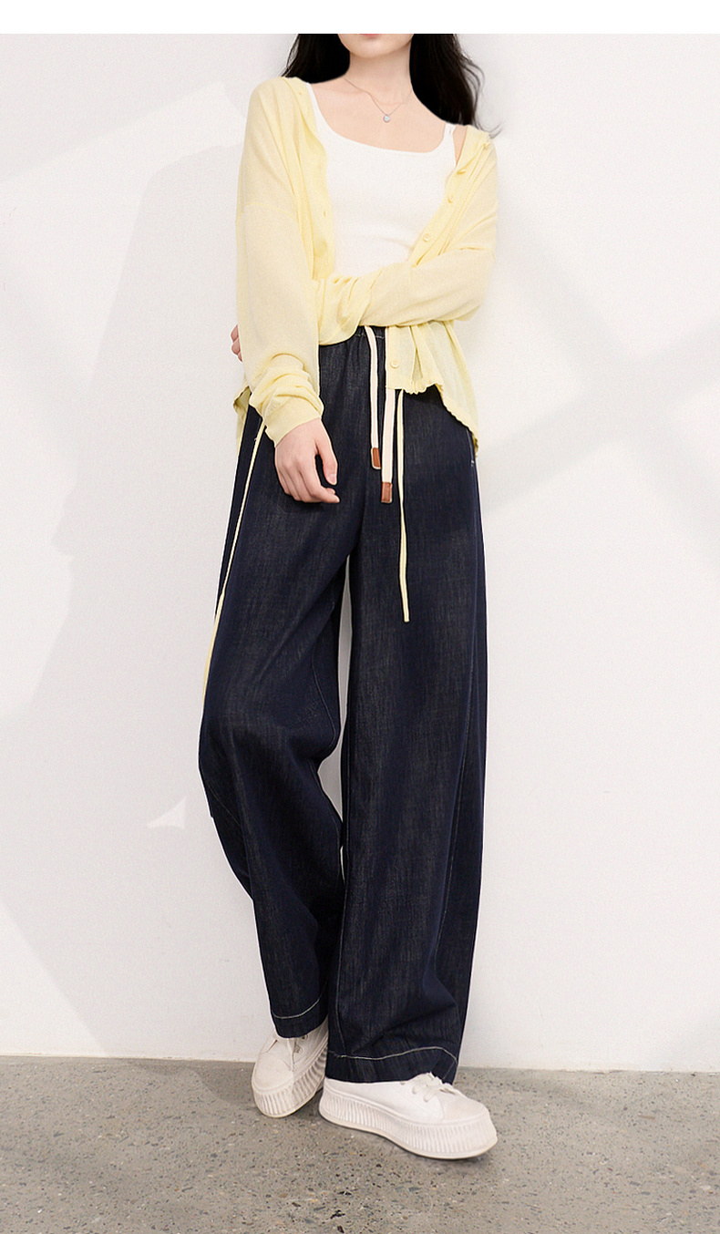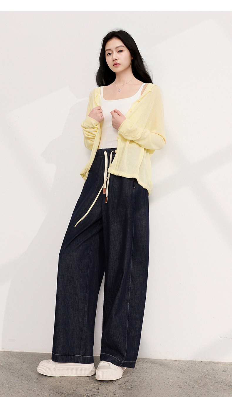 三彩2026夏季新款美式复古休闲裤牛仔裤高腰宽松气球裤九分裤M