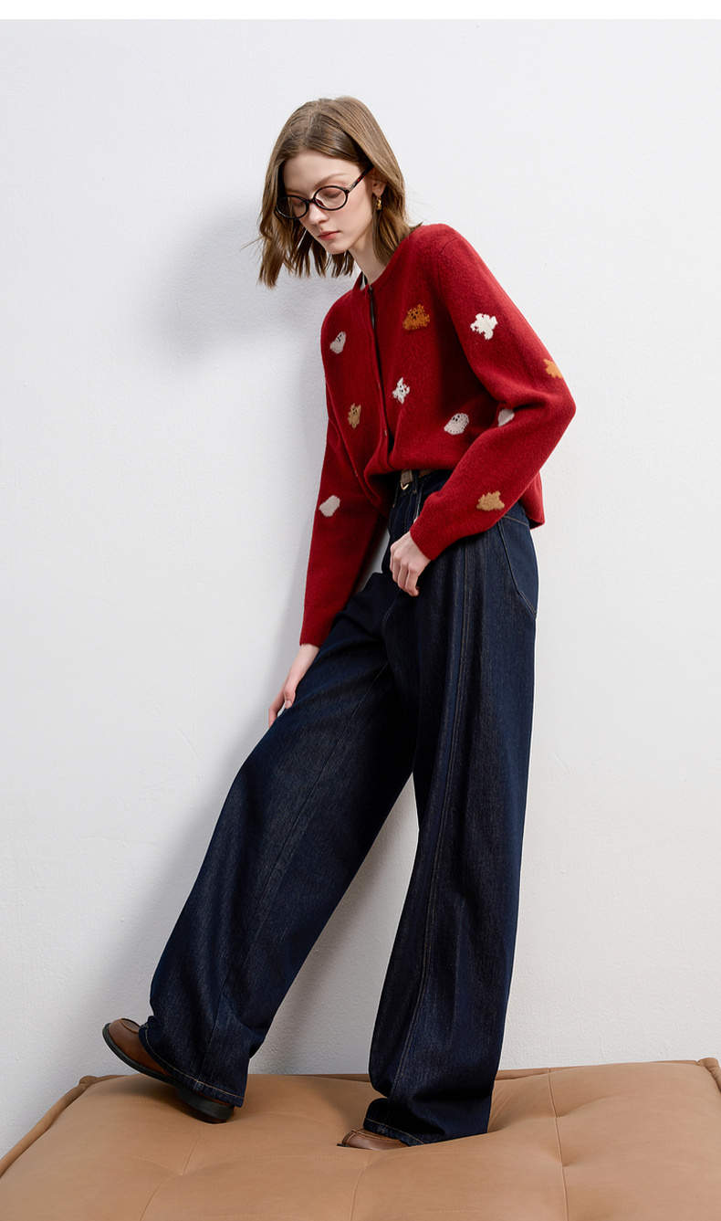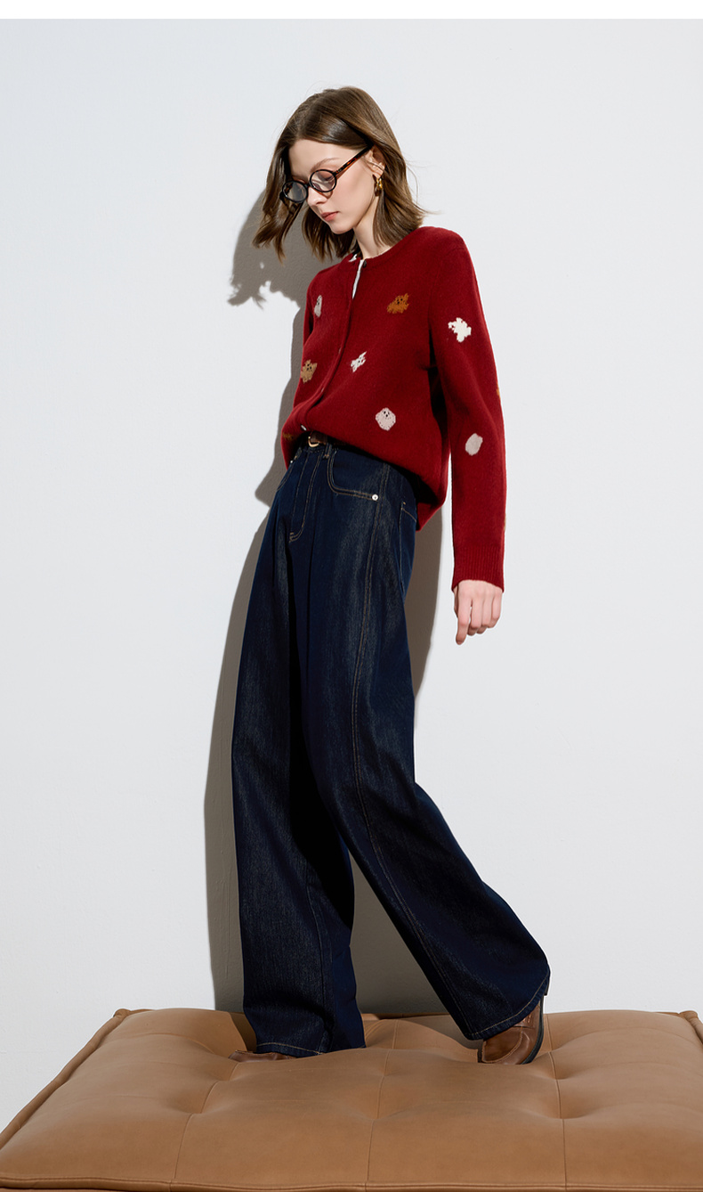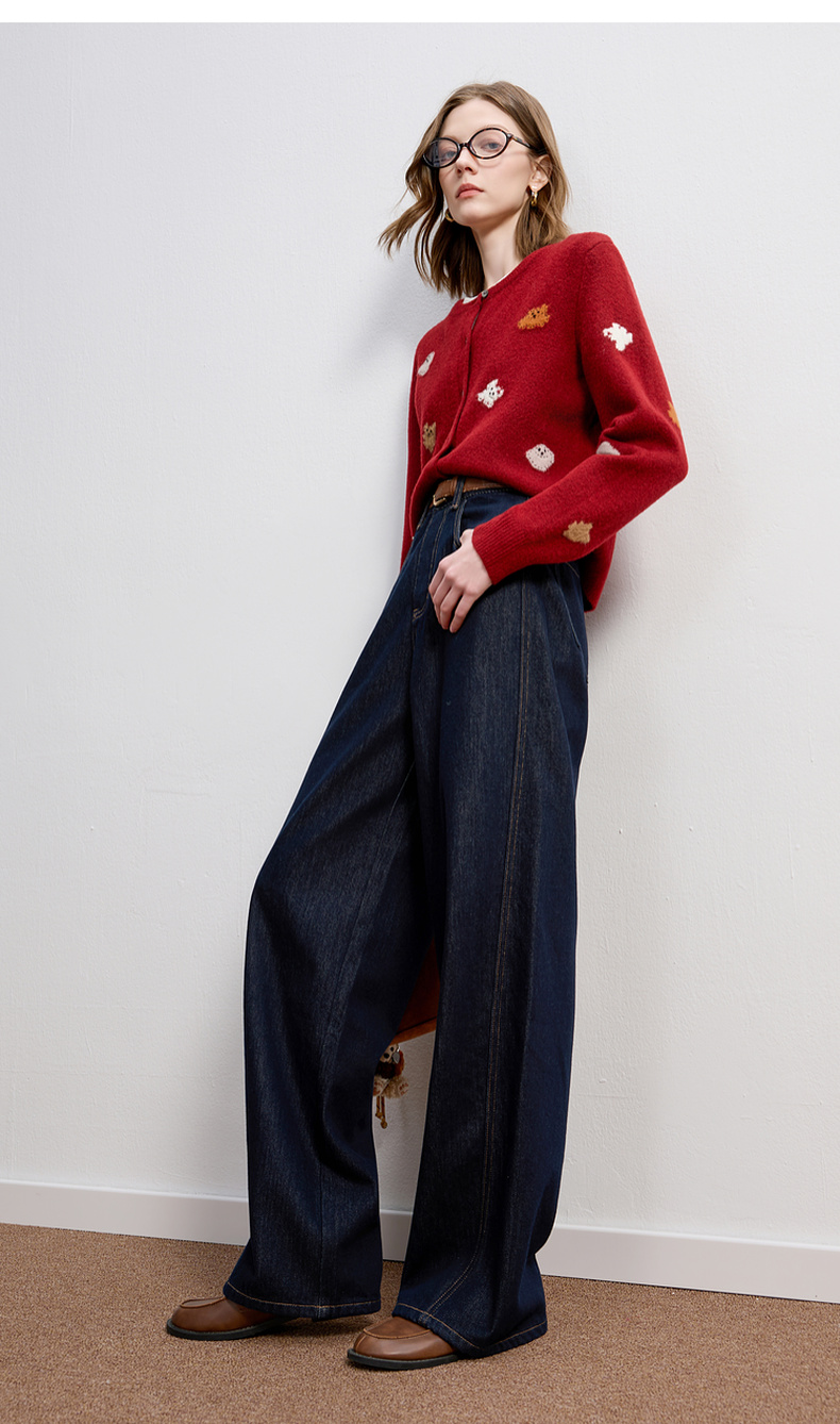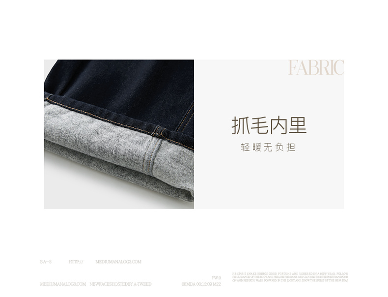 三彩2025冬季新款收腰直筒裤牛仔裤长裤百搭休闲保暖显瘦M