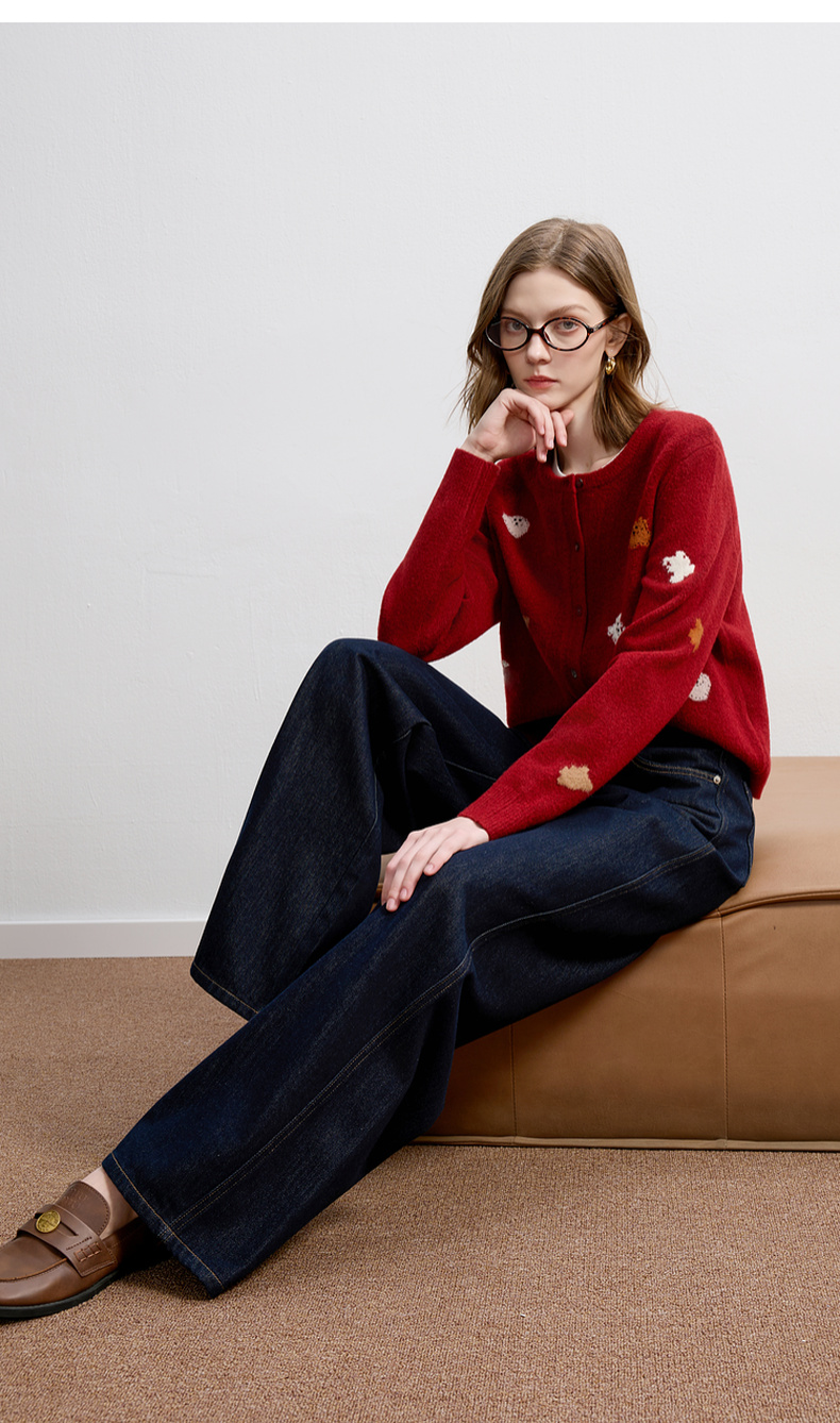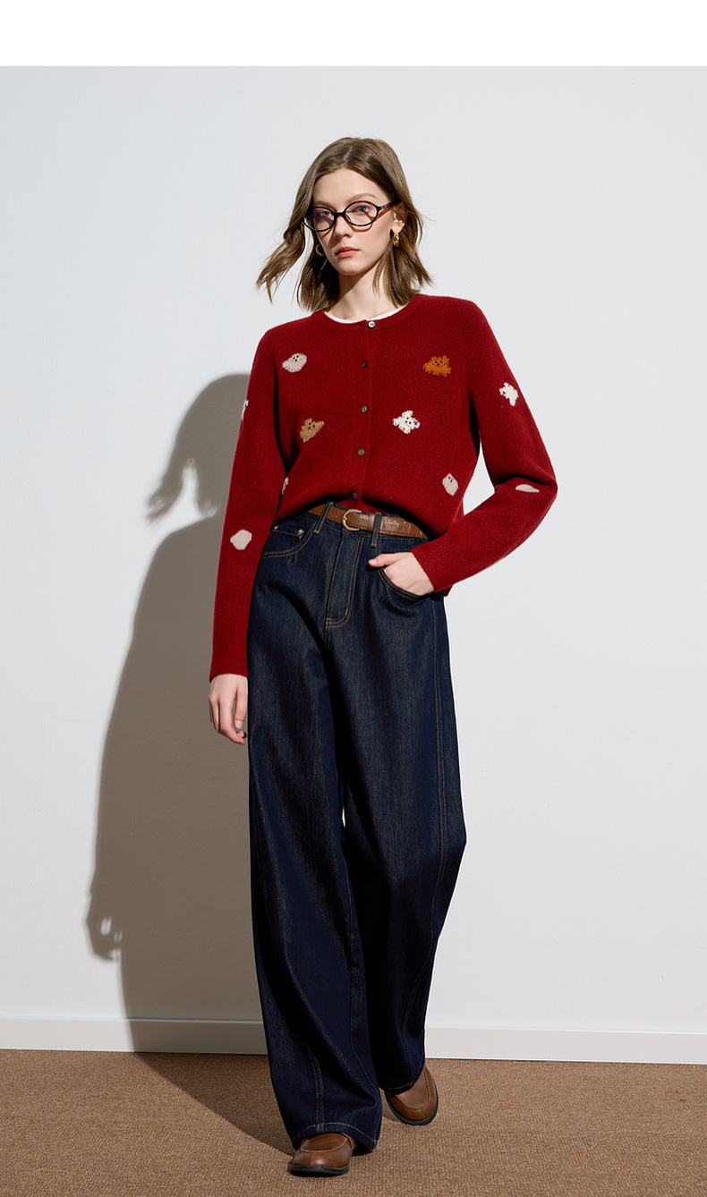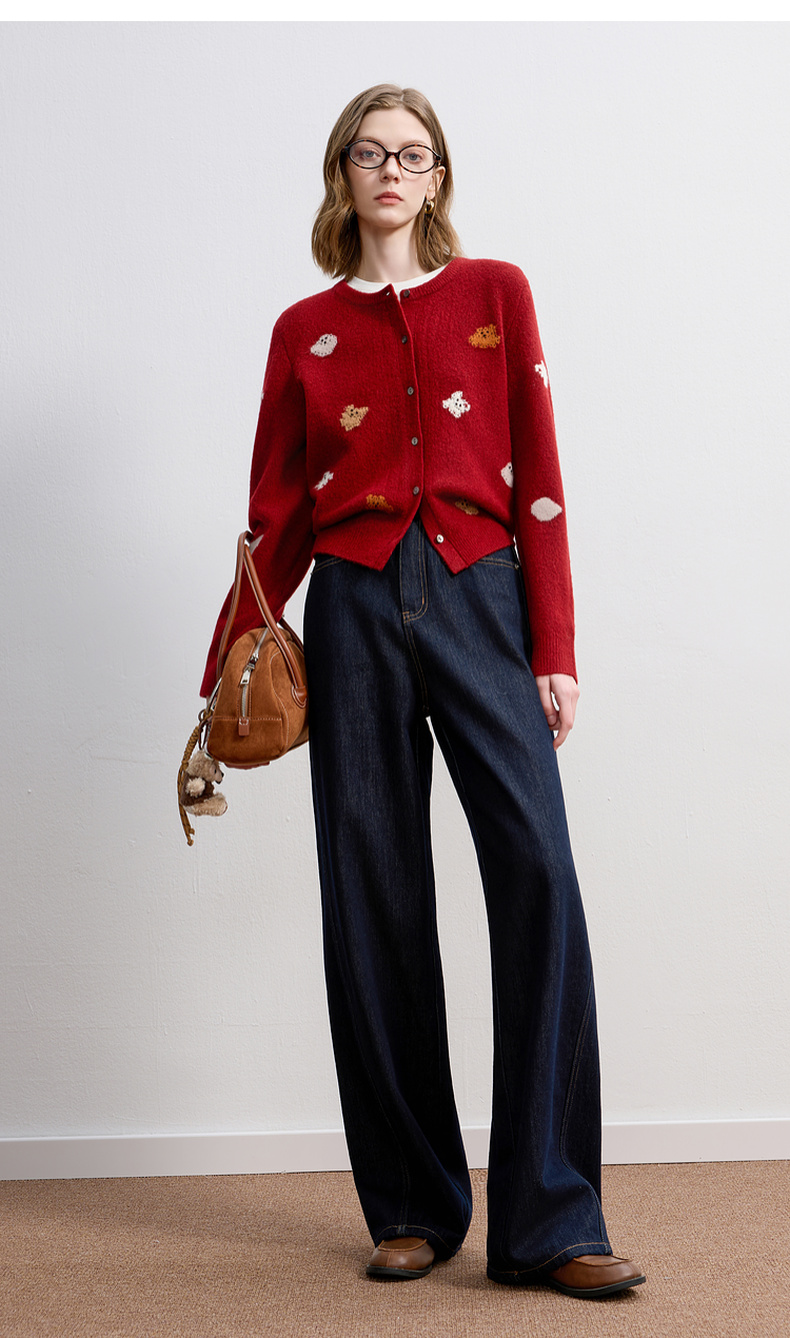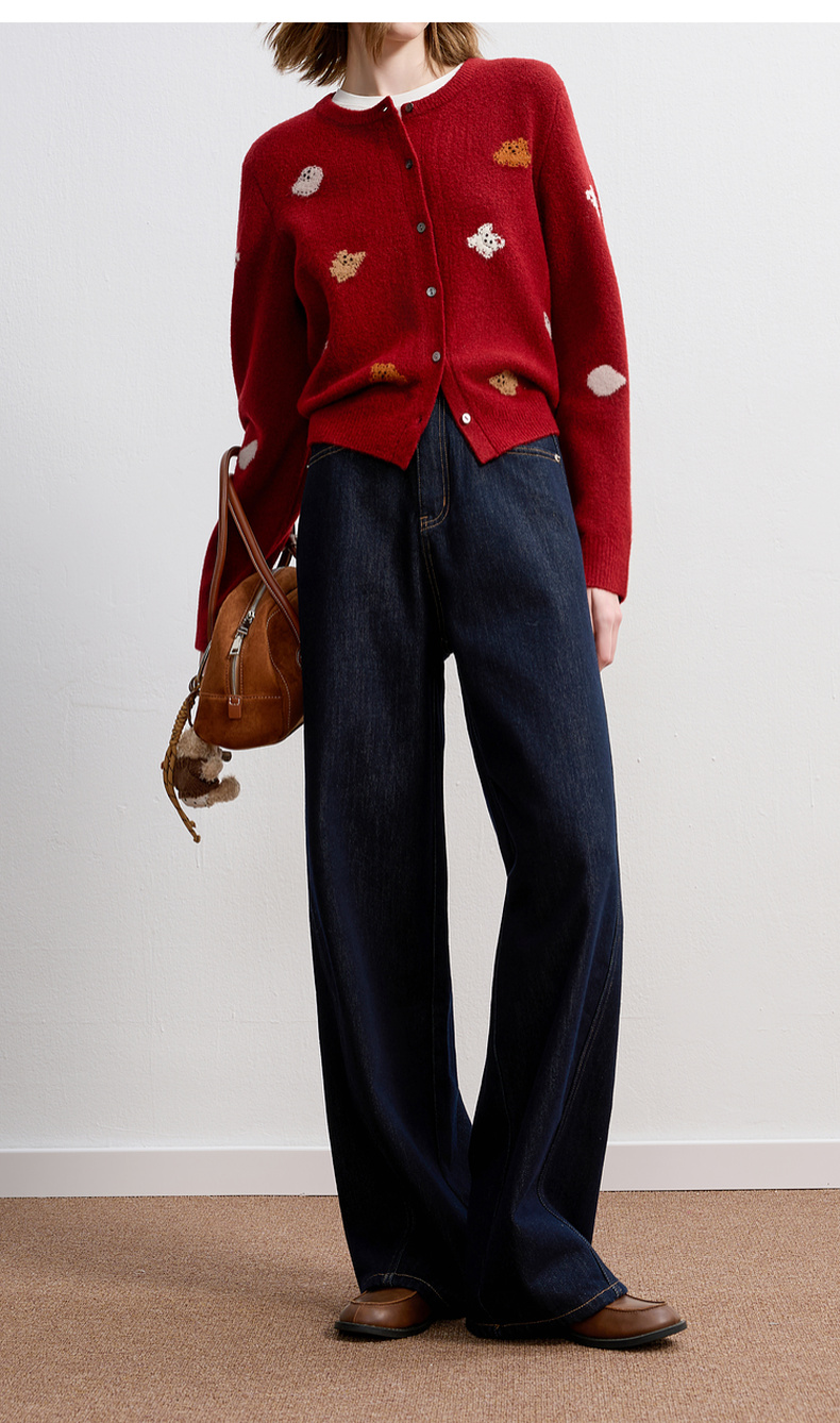 三彩2025冬季新款收腰直筒裤牛仔裤长裤百搭休闲保暖显瘦M