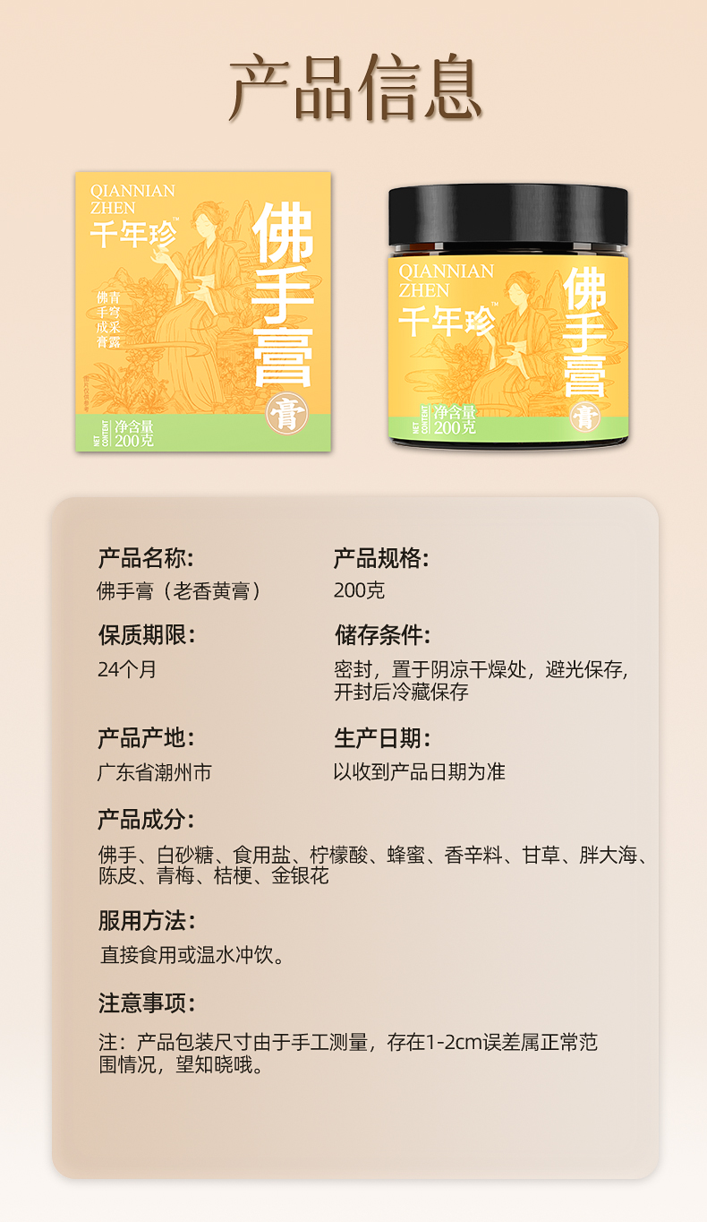 200g佛手膏 非遗九蒸九晒
