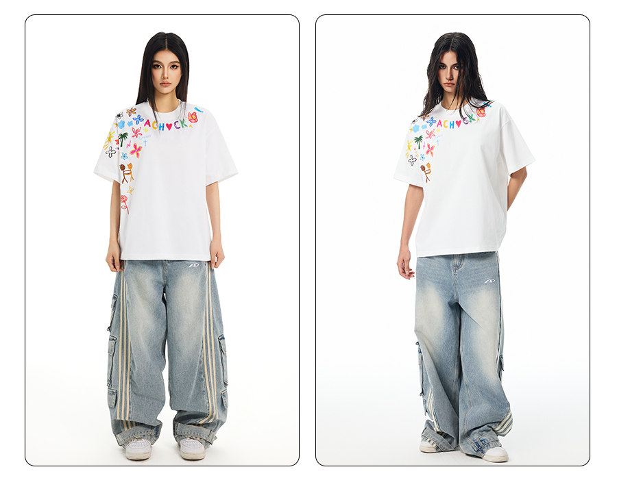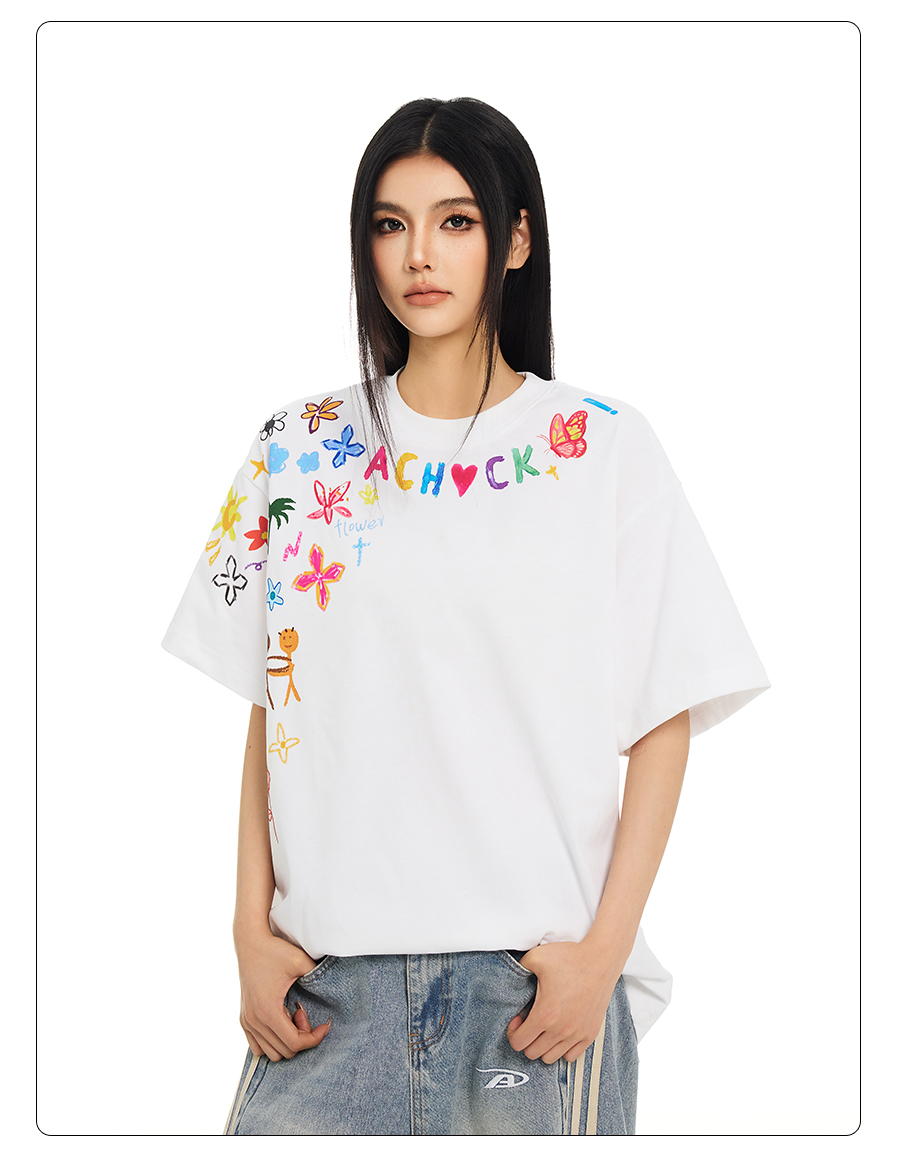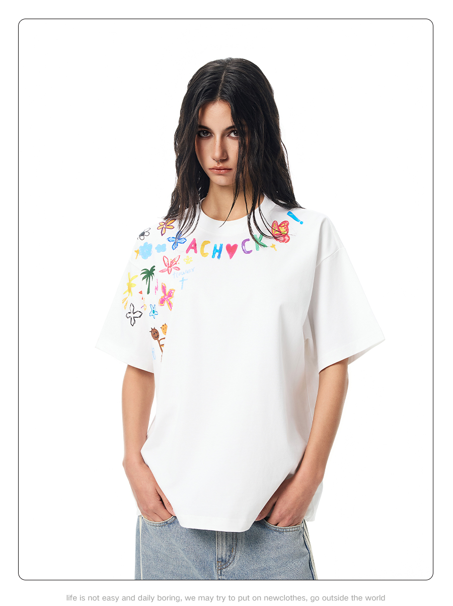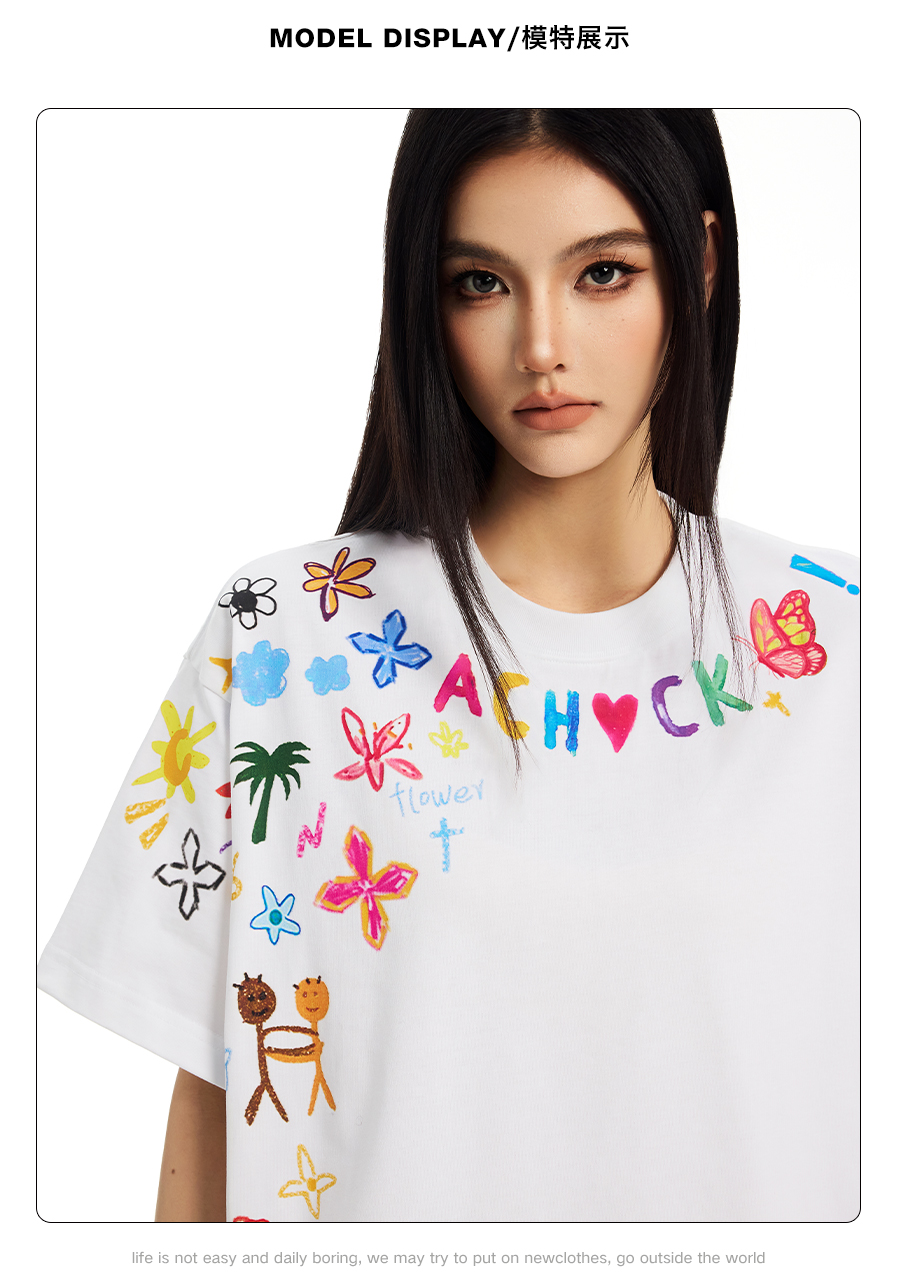 【Achock官方店】潮牌创意卡通涂鸦印花半袖T恤高街情侣圆领短袖