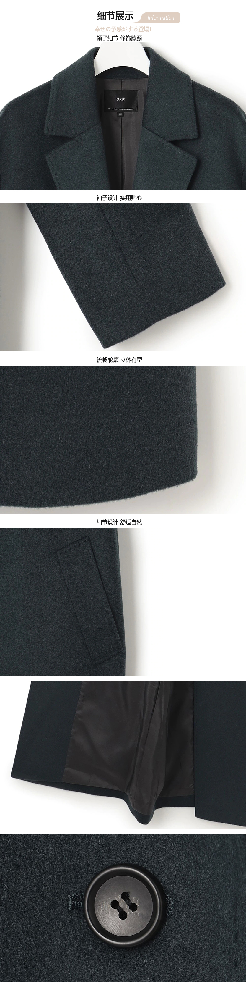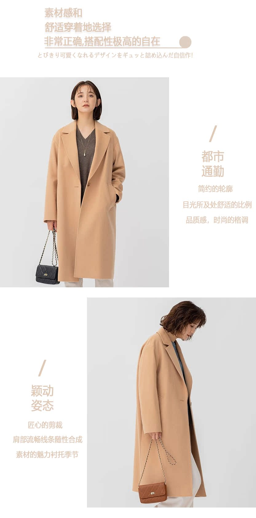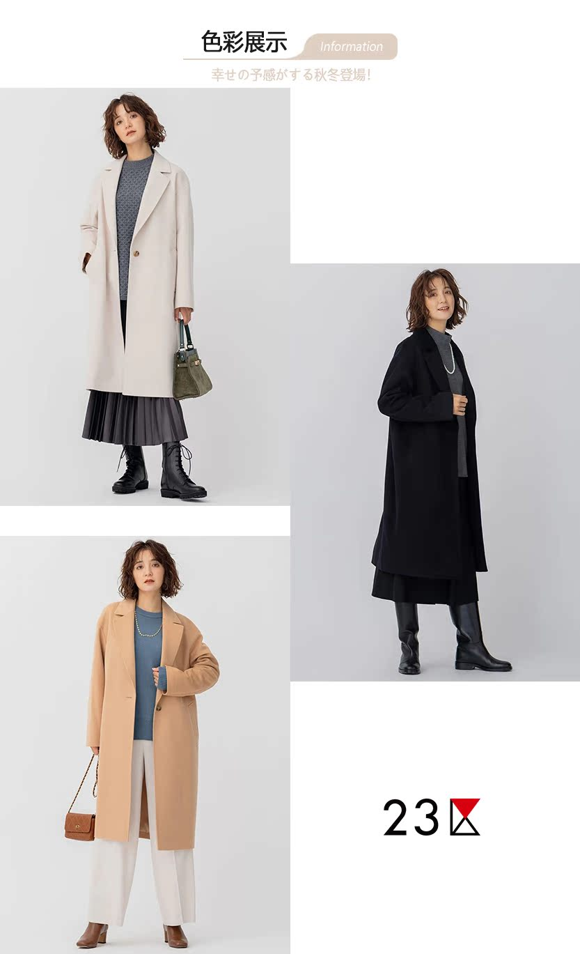 23区日系秋冬季通勤羊毛羊绒混纺一粒扣中长毛呢大衣外套商场同款