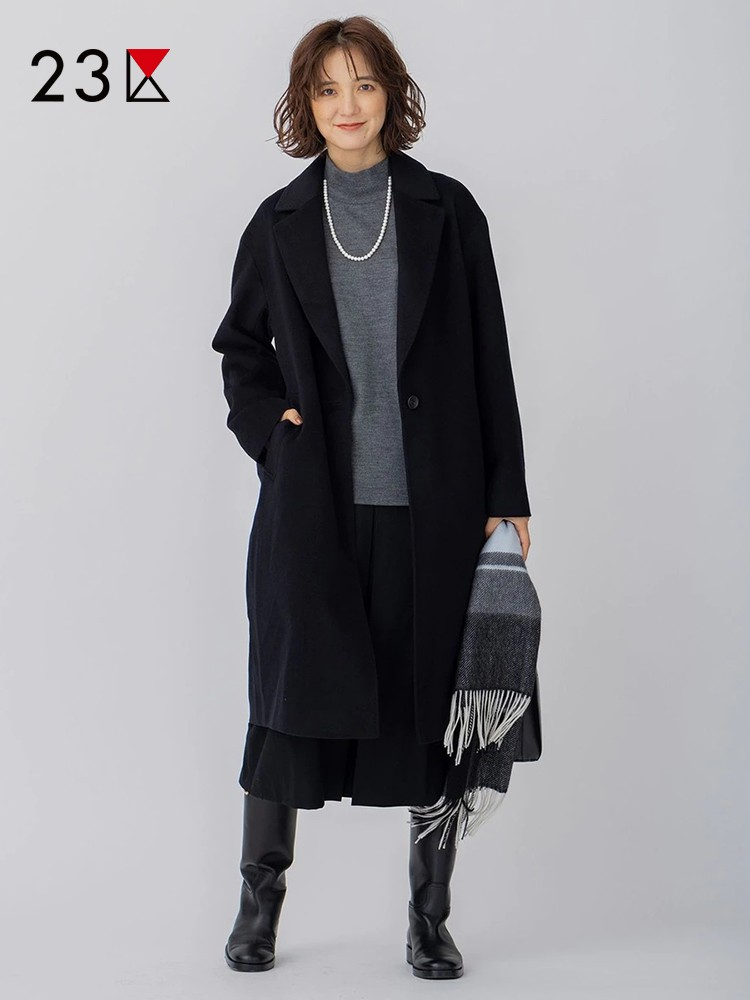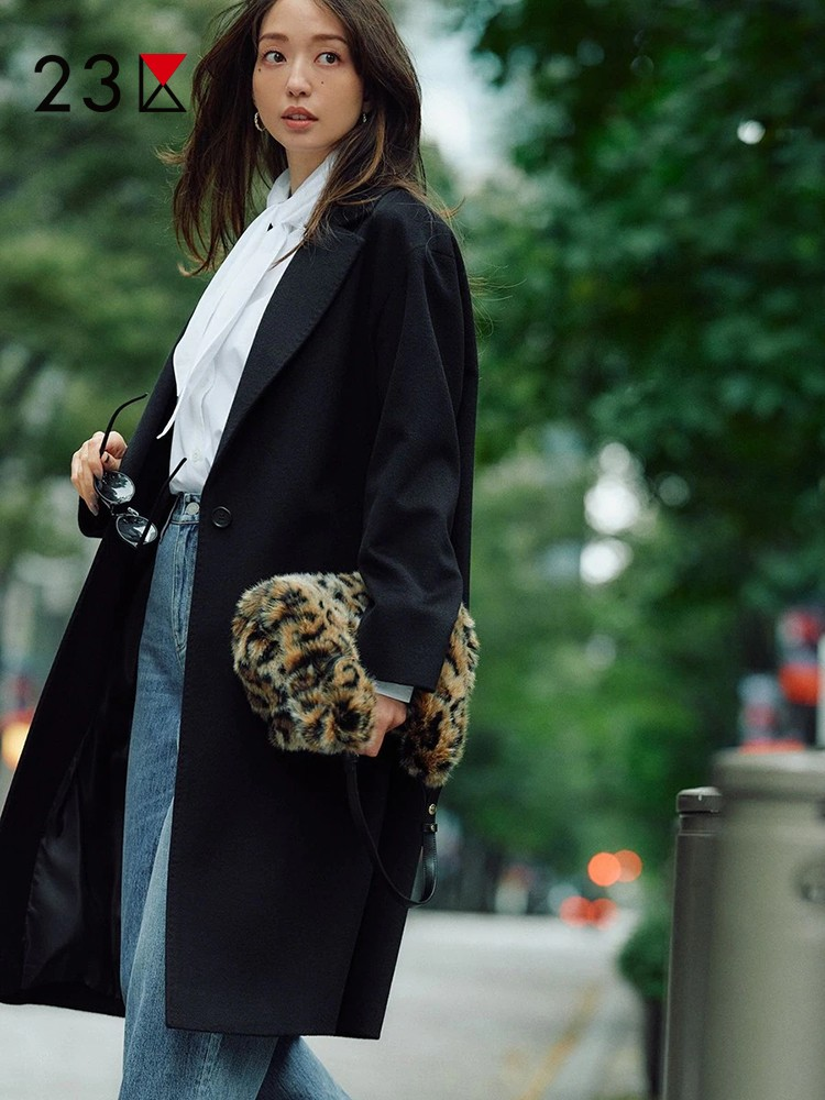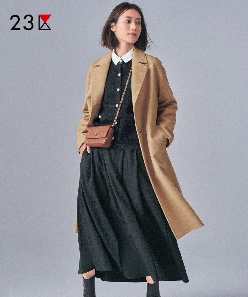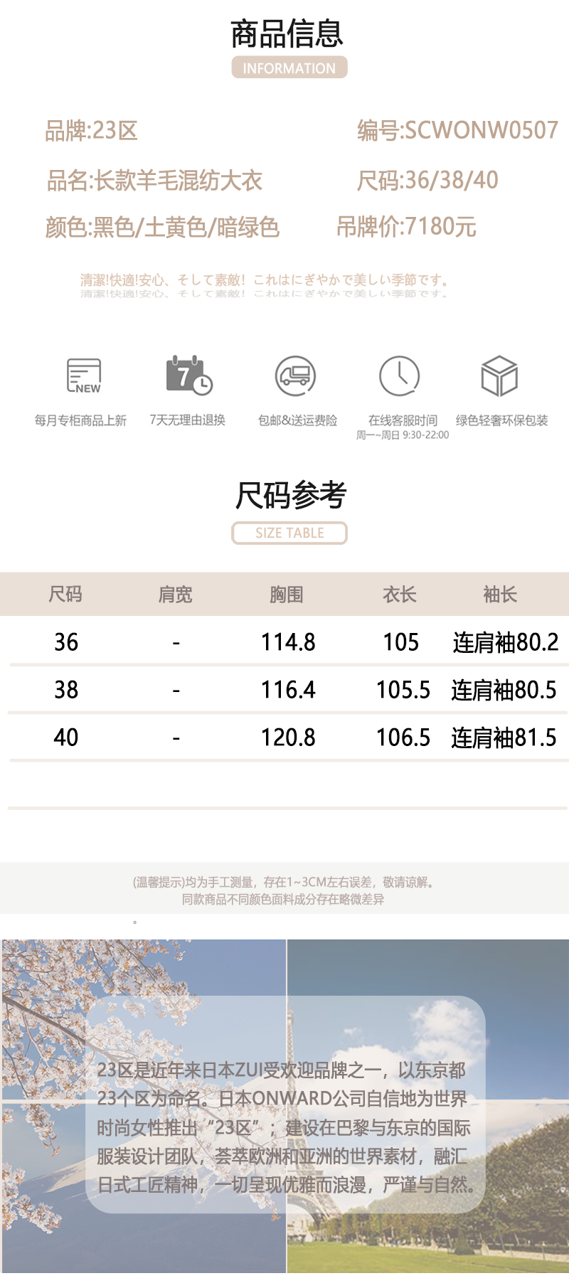 23区日系秋冬季通勤羊毛羊绒混纺一粒扣中长毛呢大衣外套商场同款