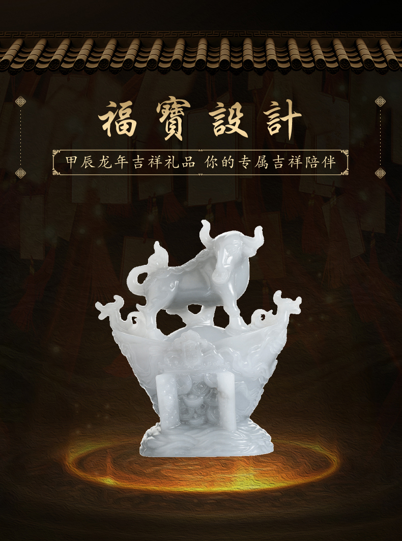 慈元阁2024方位吉祥物龙年新年礼物富华白龙白玉摆件家居客厅