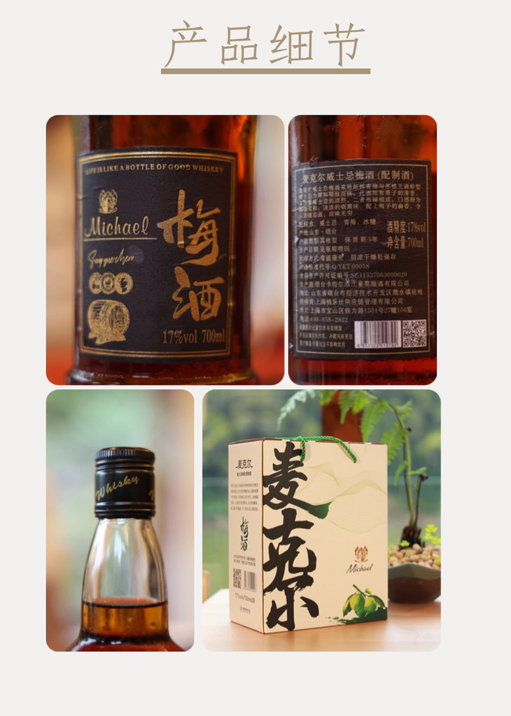 麦克尔Michael威士忌梅酒,1919酒水连锁专柜款,口感顺滑,层次丰富,17%Vol