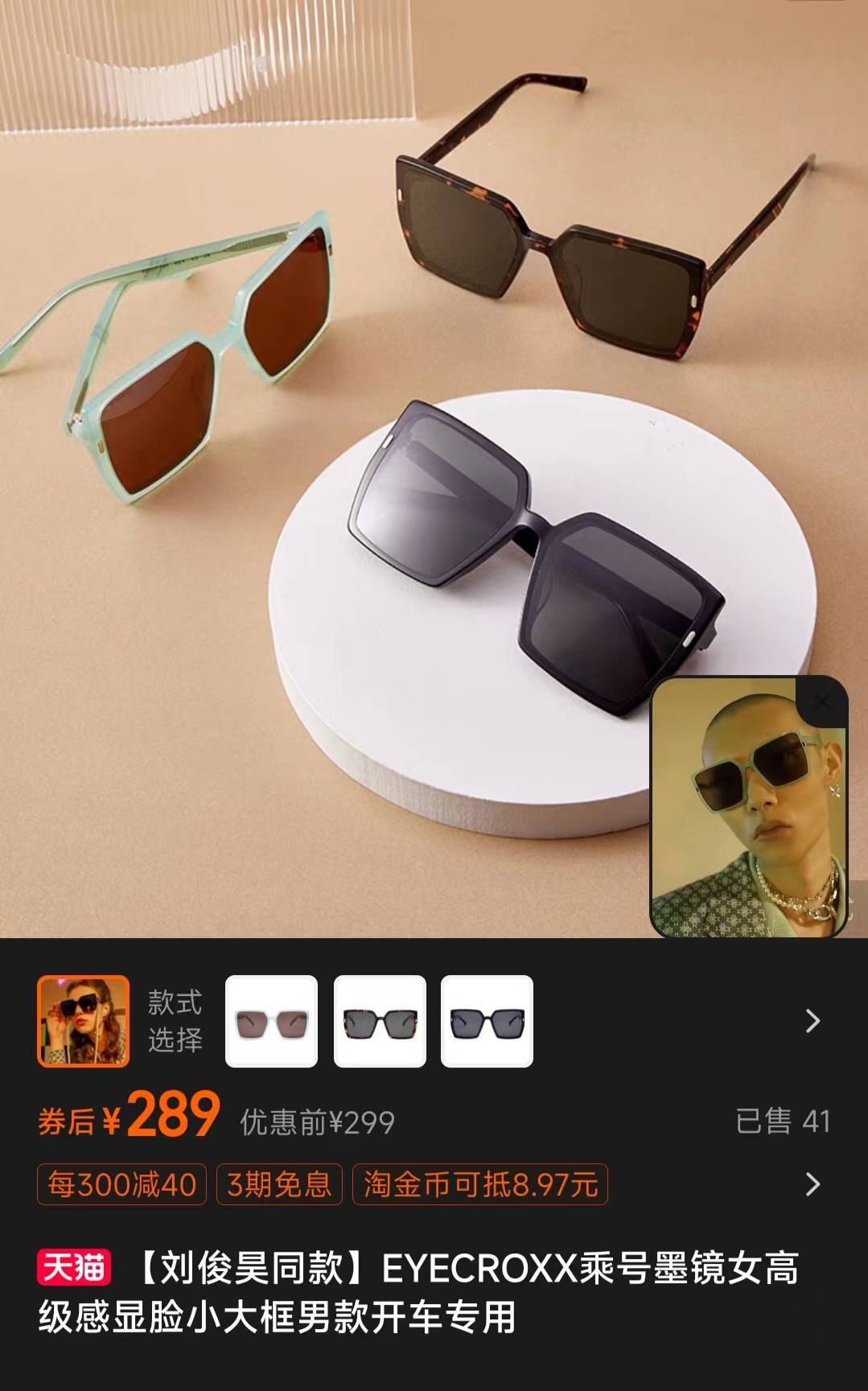 1:【刘俊昊同款】 EYECROXX乘号墨镜XS21016Key