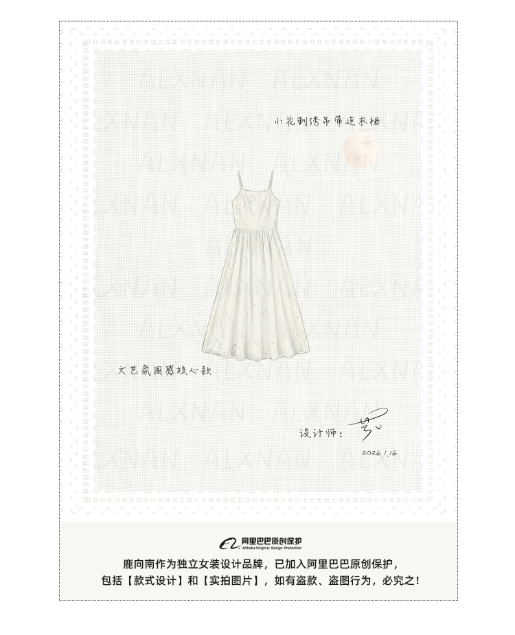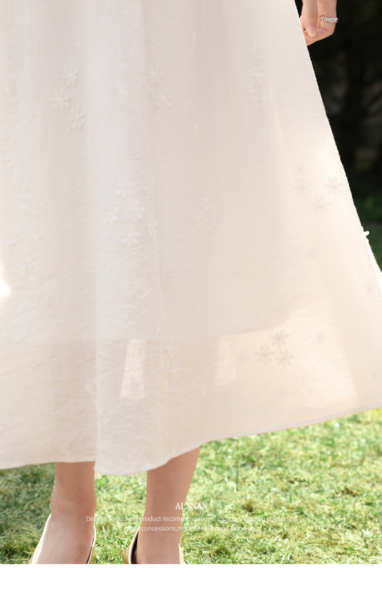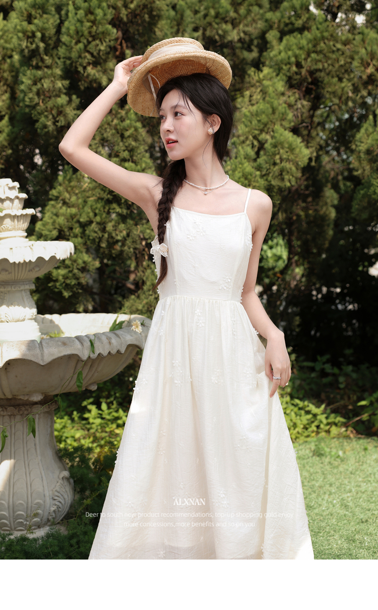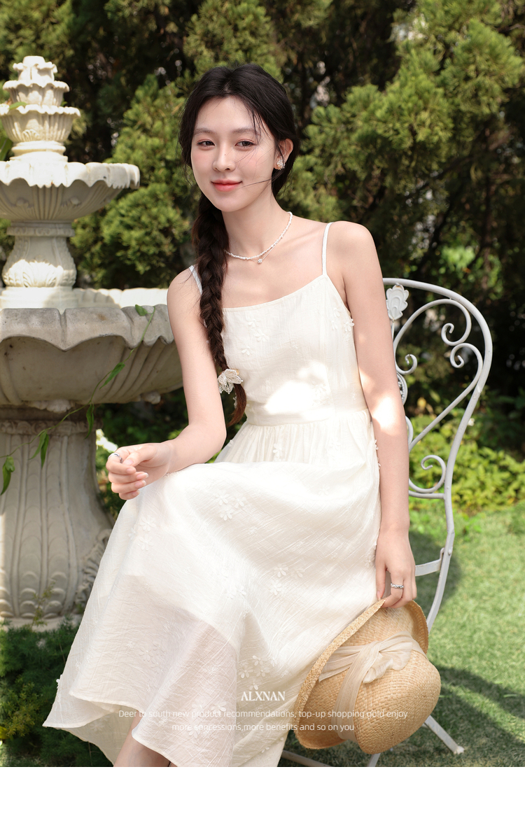 鹿向南「云深茶白」米白色法式吊带连衣裙女春季海边度假收腰长裙
