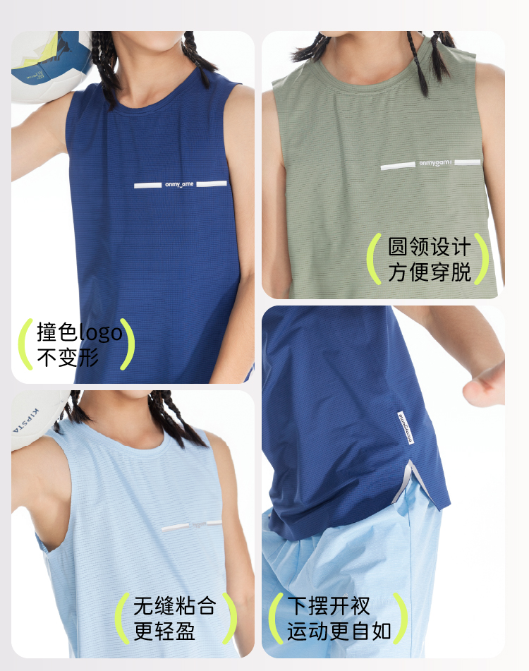 ommygame男童运动背心超轻凉感2024新款儿童无袖T恤夏季宽松上衣