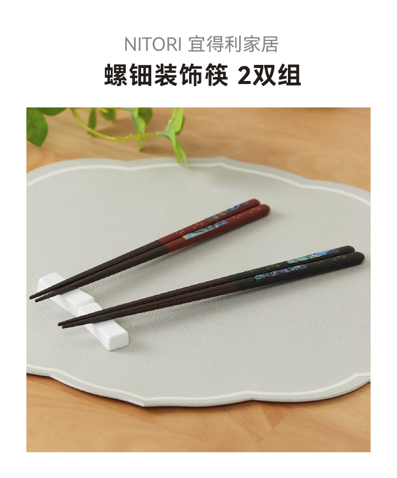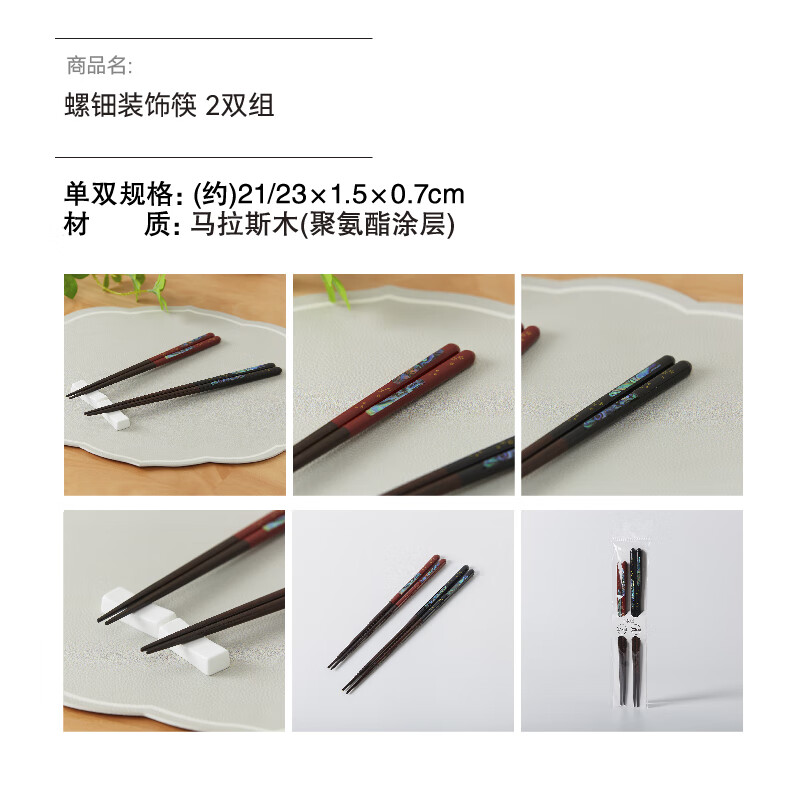 日式餐具尖头寿司筷子木筷螺钿装饰筷2双组