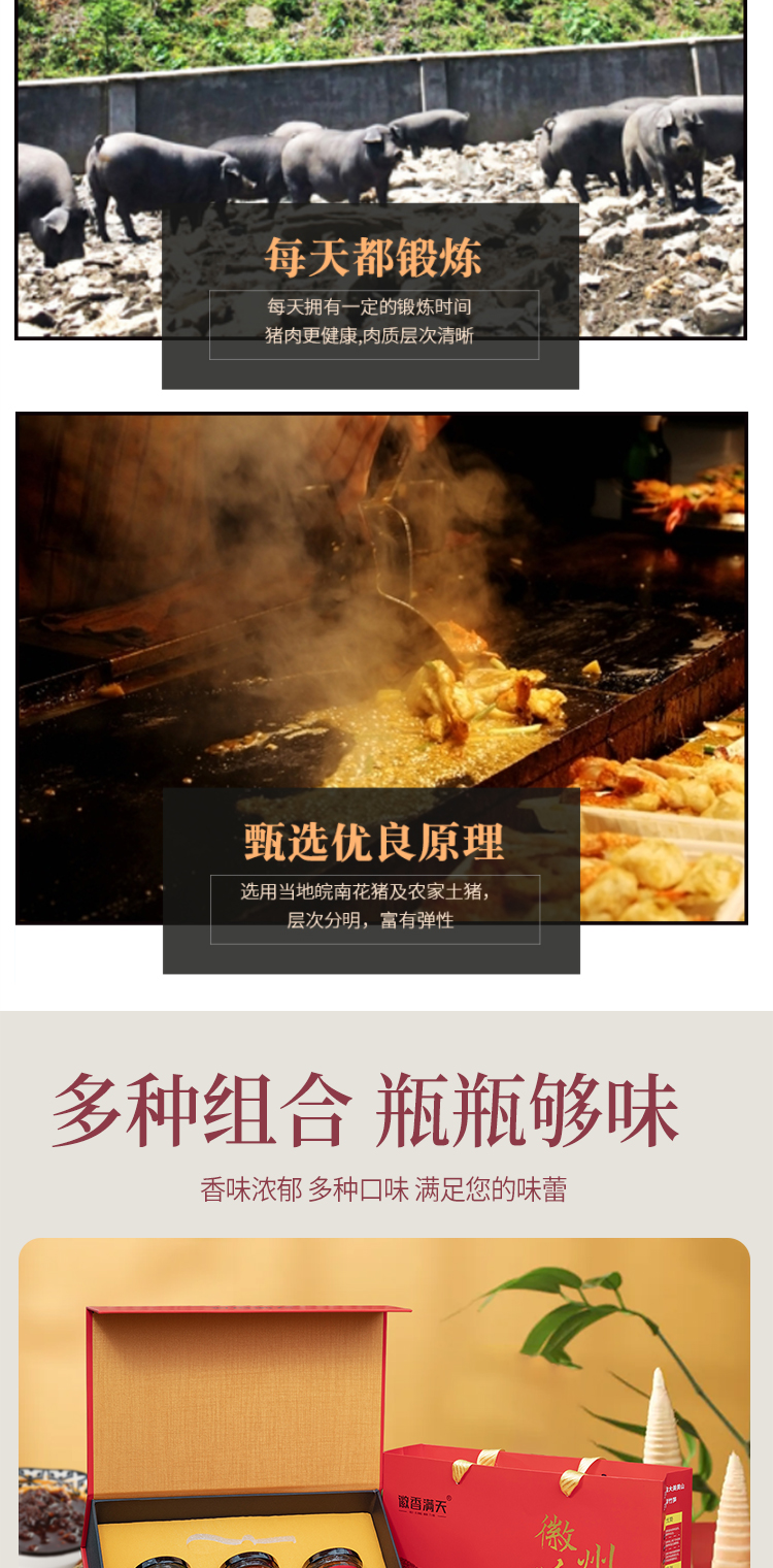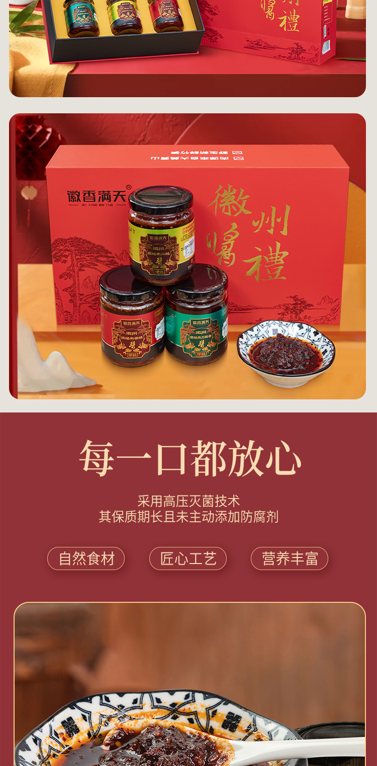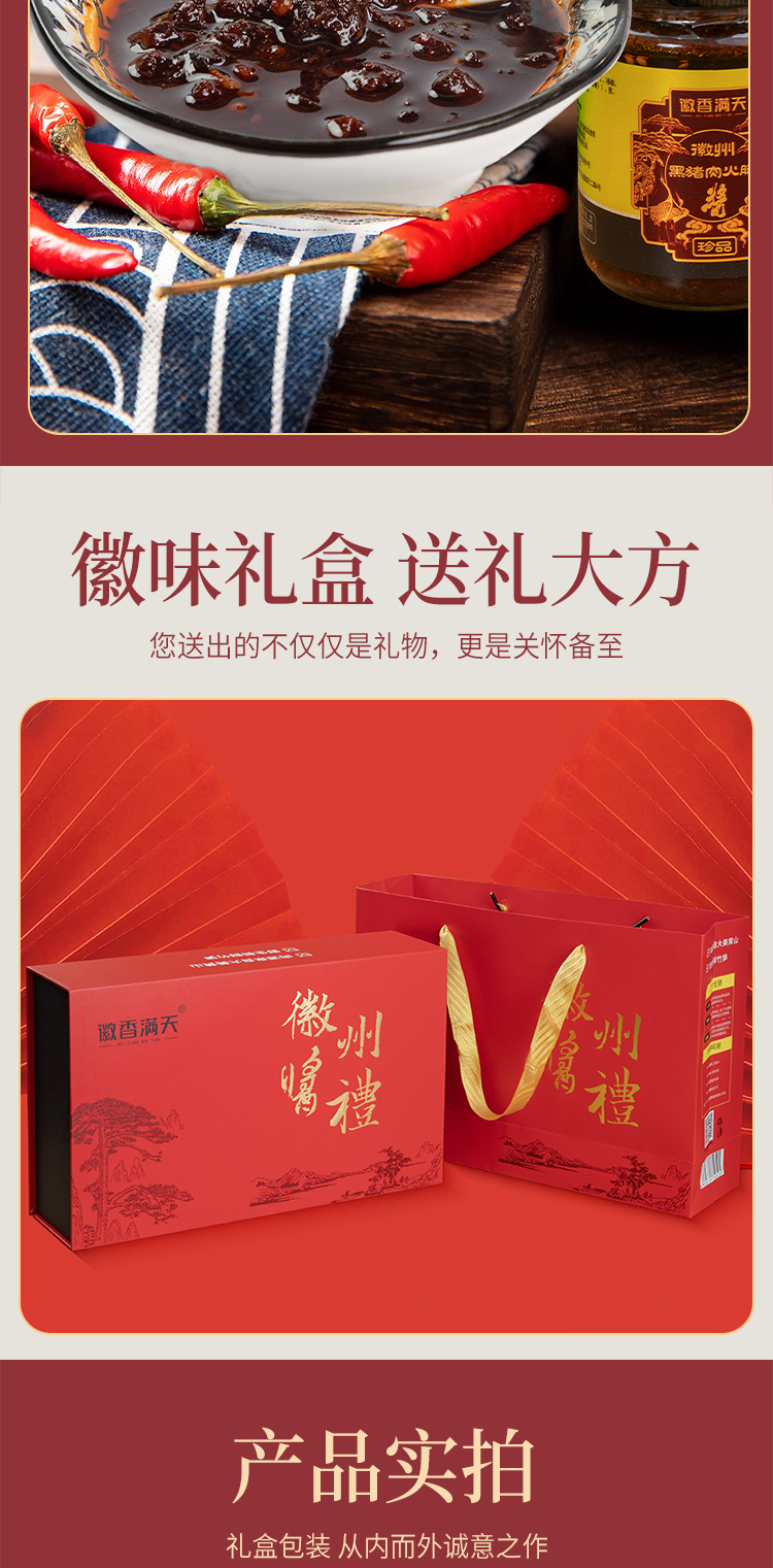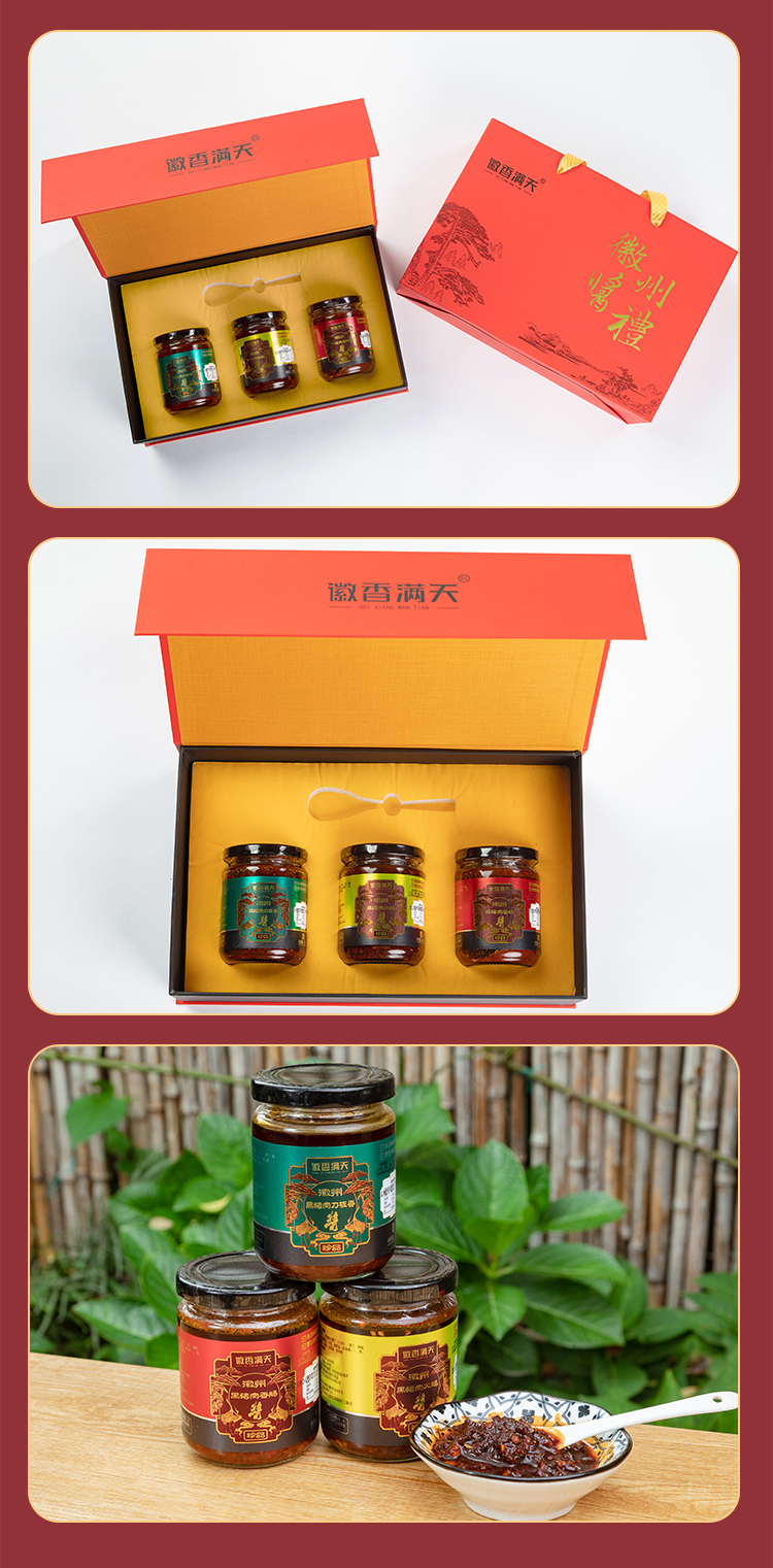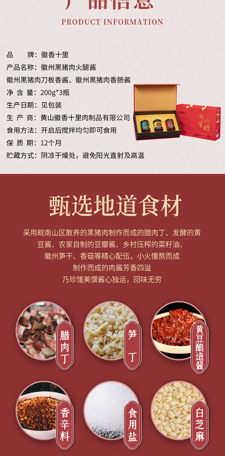 【徽香十里】徽州特产礼盒 黑猪肉香肠酱 黑猪肉刀板香酱 黑猪肉火腿酱调味礼盒200g*3瓶
