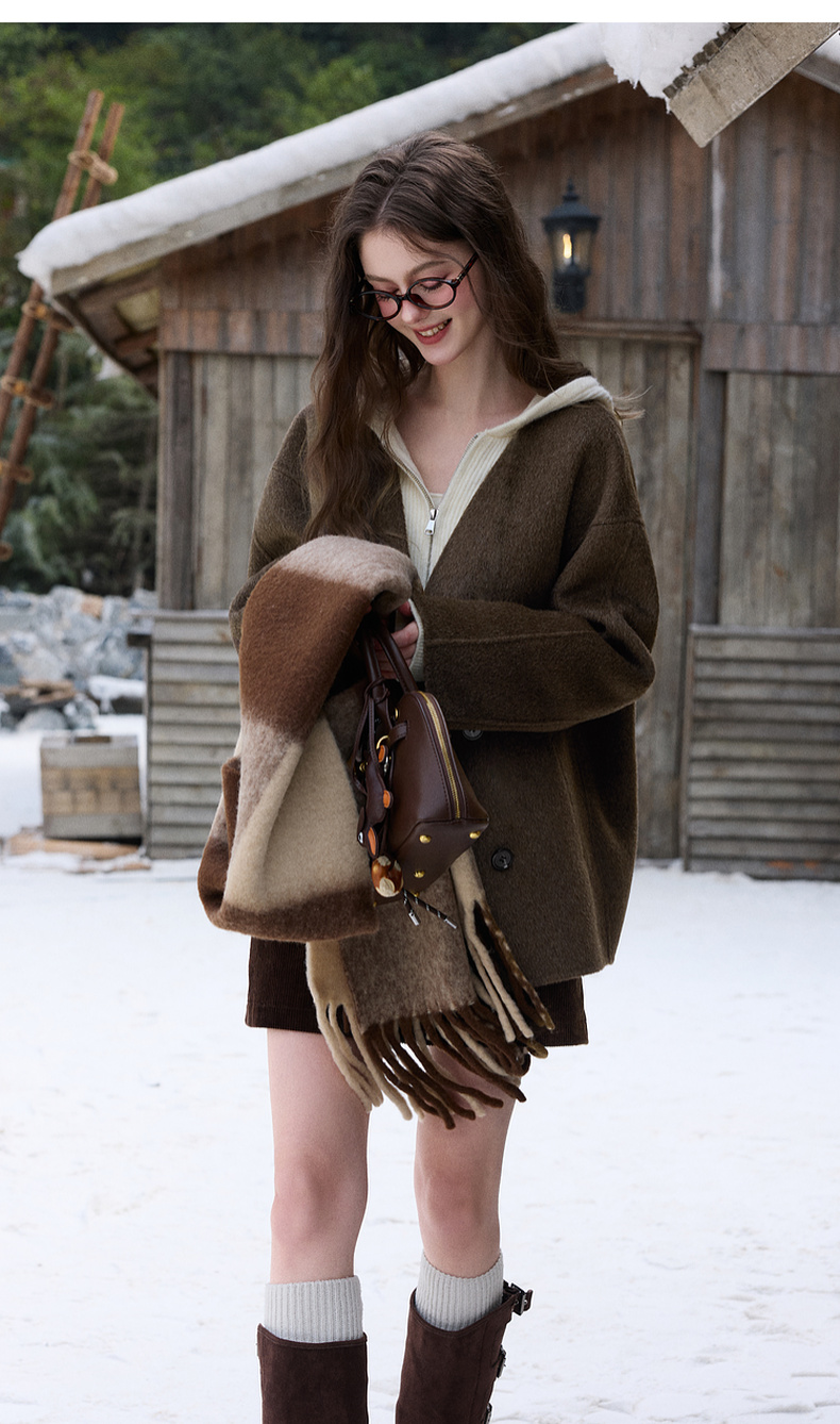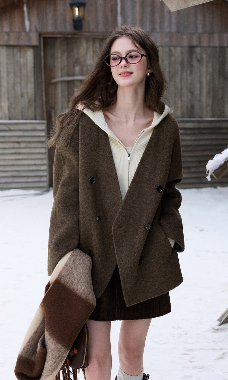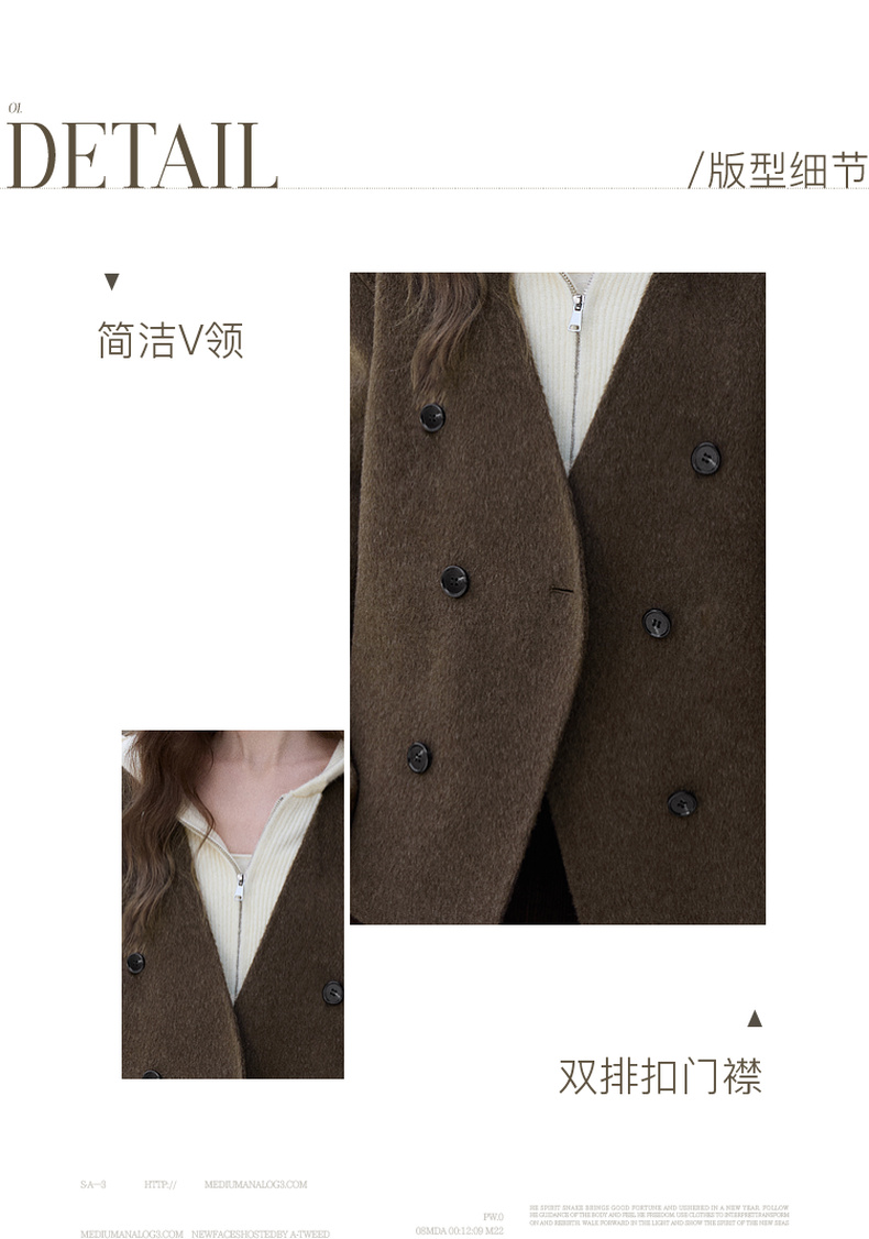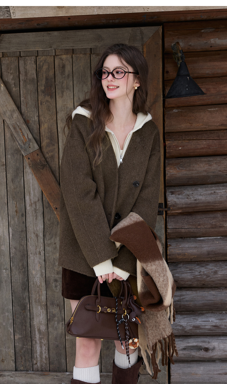 【100绵羊毛】三彩2025冬季新款复古宽松双面呢大衣毛呢外套保暖M