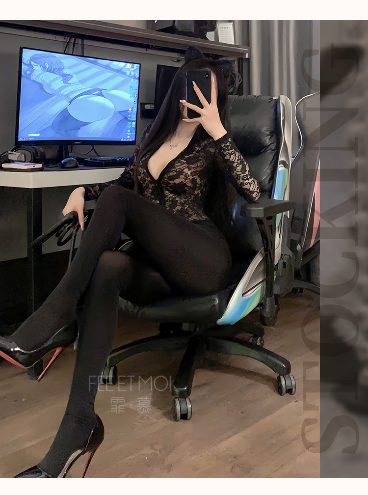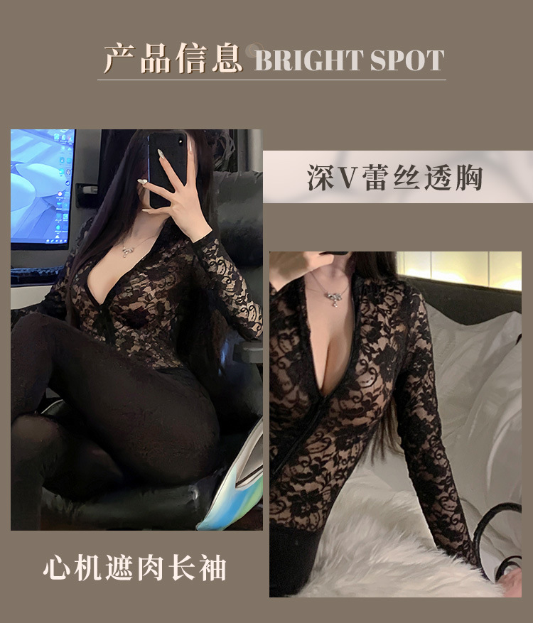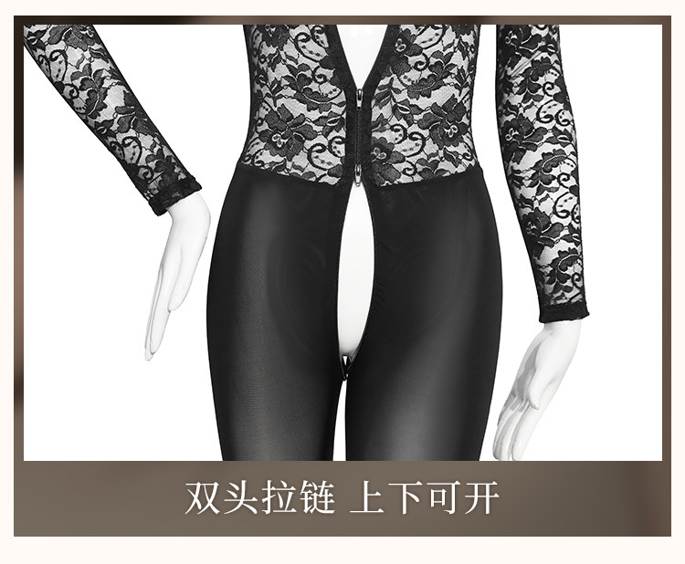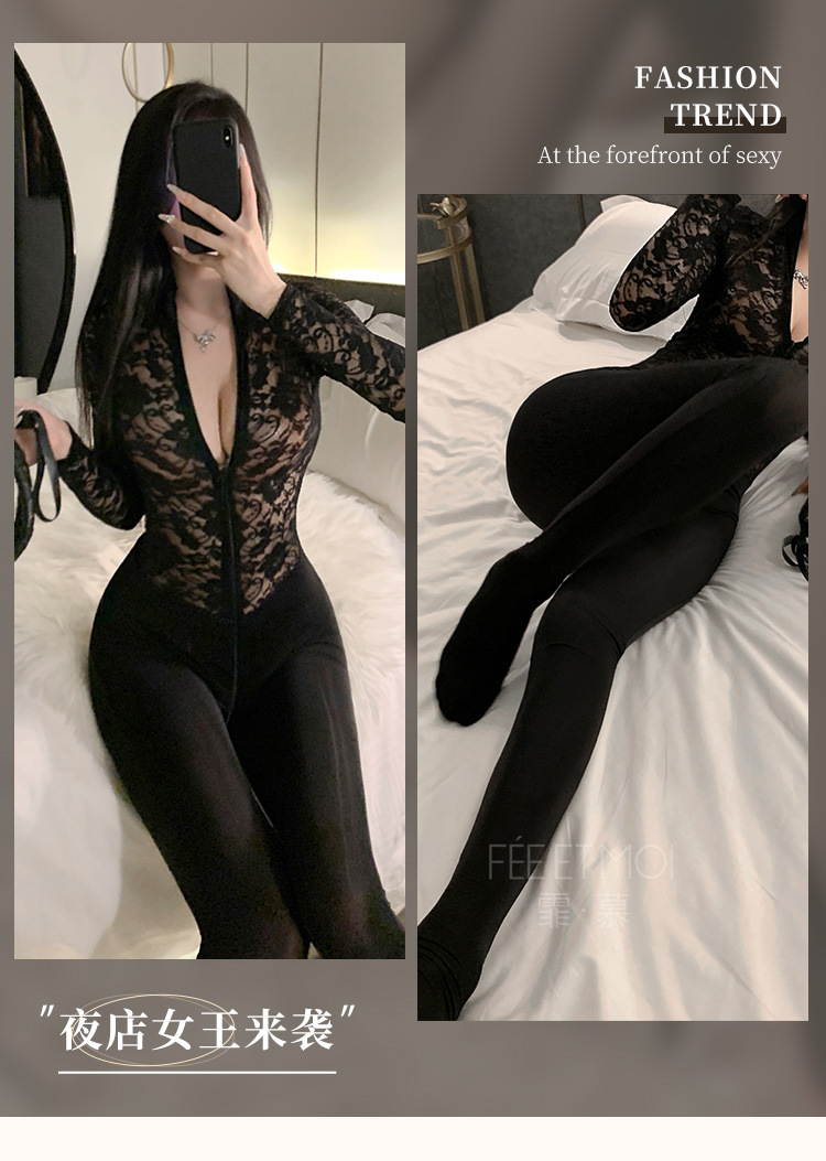 【霏慕】 深V双头拉链开裆连体衣情趣内衣性感制服诱惑情趣丝袜6360