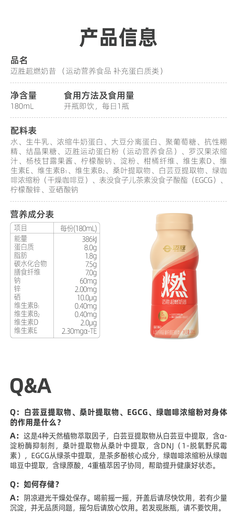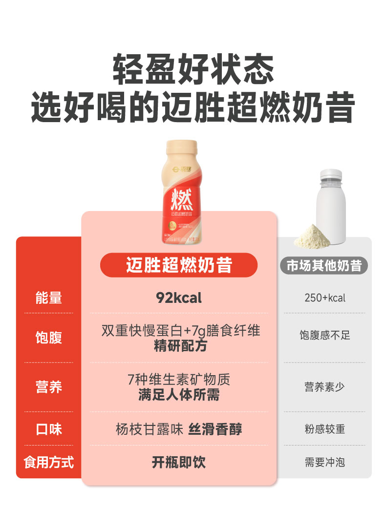 【迈胜星球 | 超燃奶昔 燃系列 杨枝甘露味】180mL*15瓶/箱
