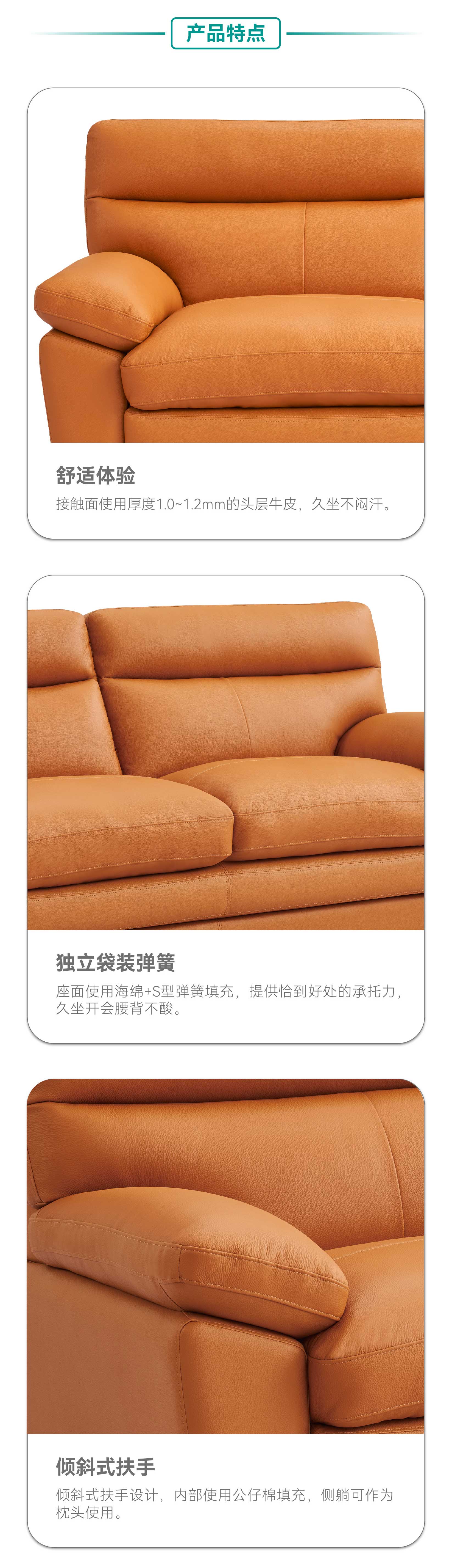 【家具】 真皮头层牛皮直排客厅家用皮沙发 奥尔良2