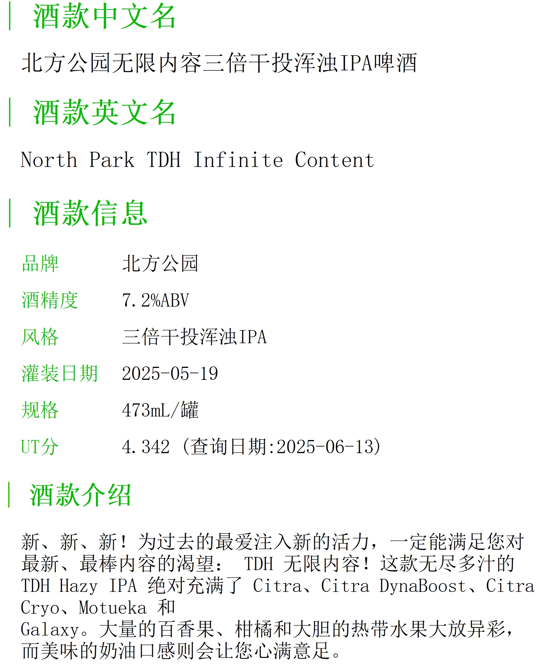 北方公园无限内容三倍干投浑浊IPA啤酒