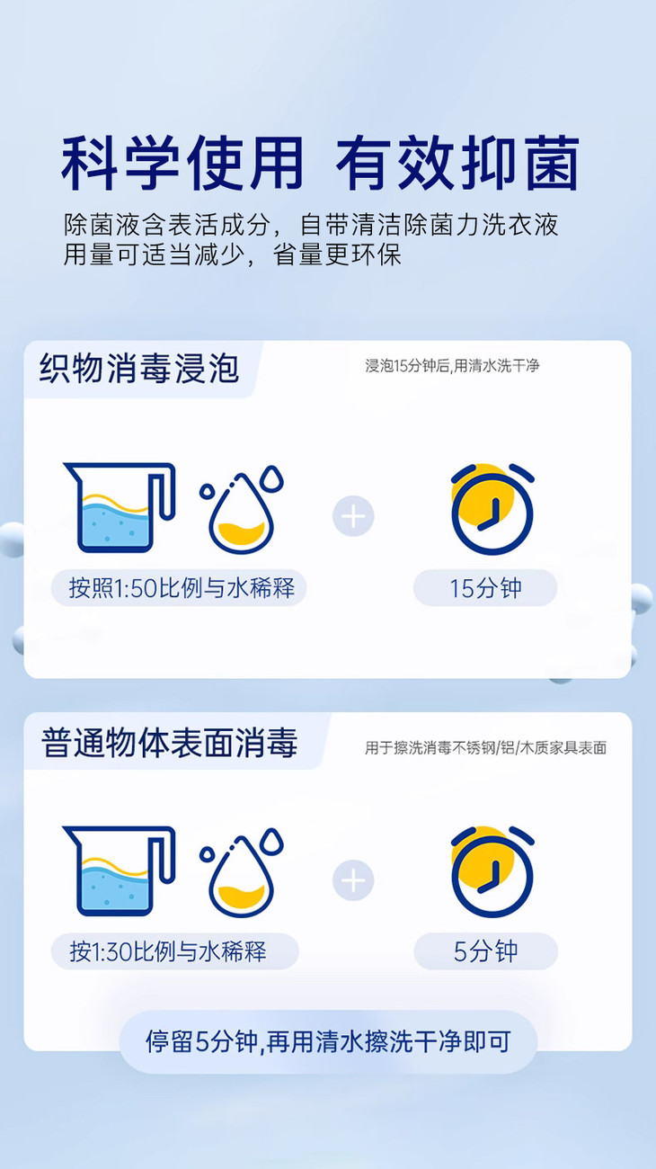 🔺主要成分是银离子除菌剂,是一种天然无毒的抗菌剂,有超高的抑菌性,非常温和! 🔺还添加了表面活性剂,深入渗透衣物纤维,辅助洗涤,消毒的同时还能护衣物纤维,你值得拥有~