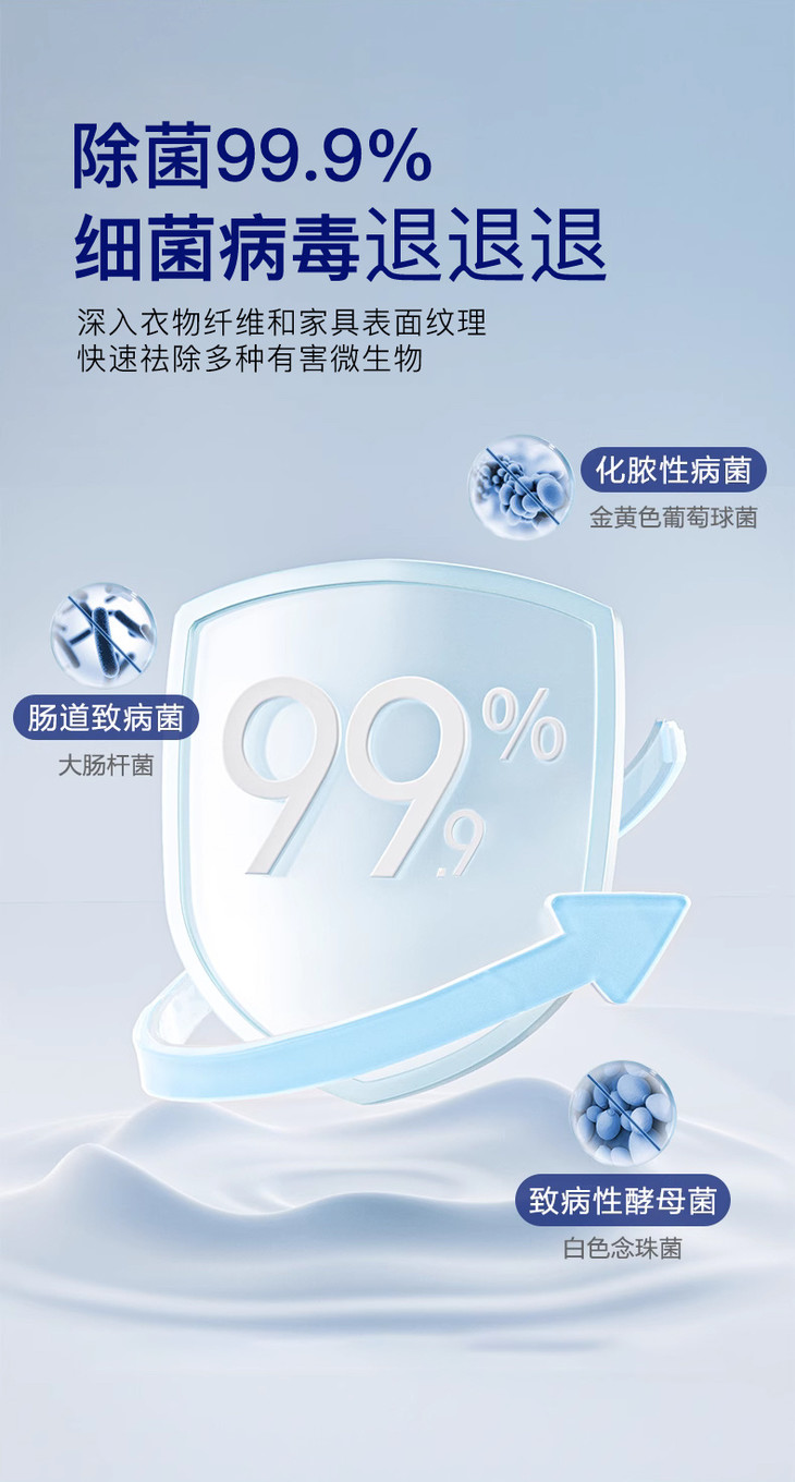 它不仅能杀细菌,更能杀灭 99.9%的细菌(市面少有),十分高效! ❗特别适合洗内衣还有宝宝的衣物❗,特别是学生党❗、以及合租❗的姐妹在用公用洗衣机的时候一定要加入我们这个消毒液 因为你永远不知道上一位那洗衣机洗了啥 添加了消毒液后就可以安心了,不用担心交叉感染!!!!