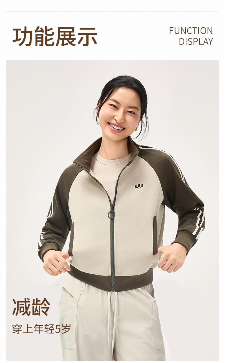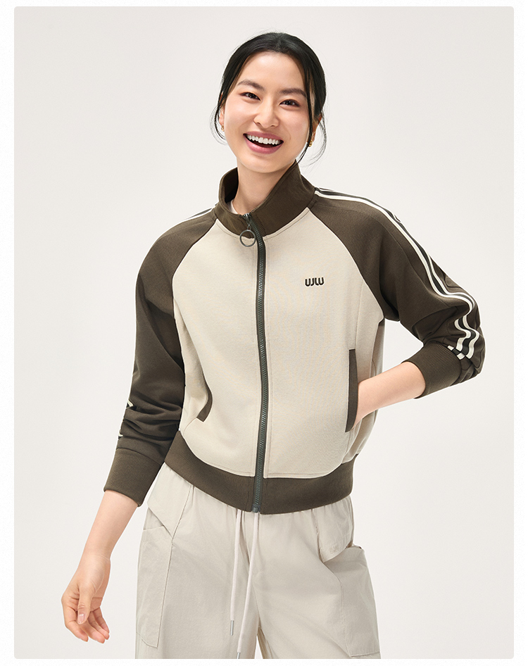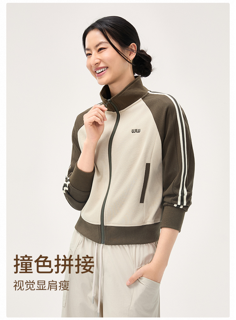 【SW速惟】 复古撞色立领开衫无帽夹克1473