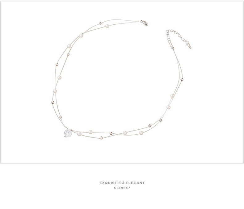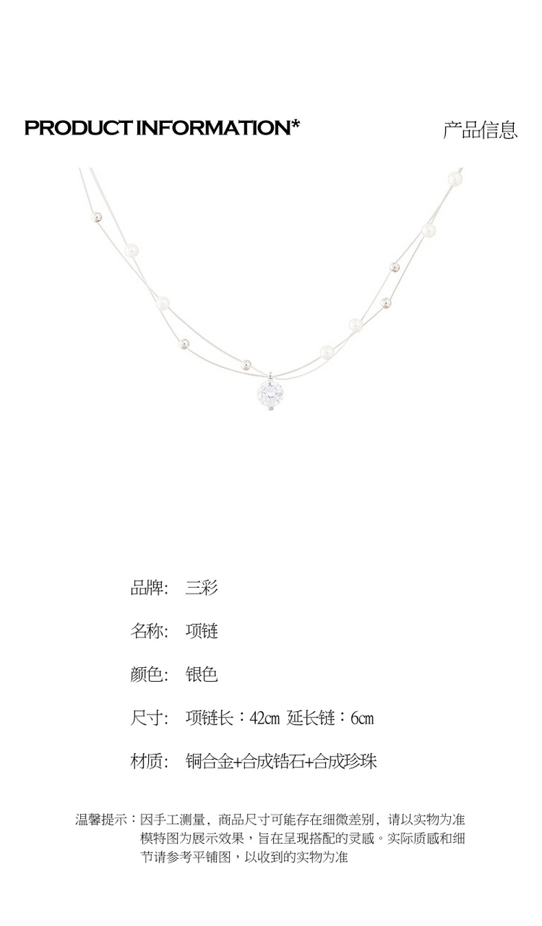 三彩2026新款极简仙气合成珍珠锆石双层项链无链感透明鱼线约会女