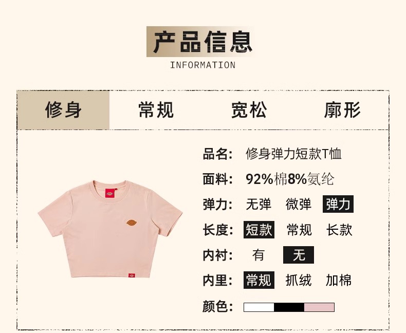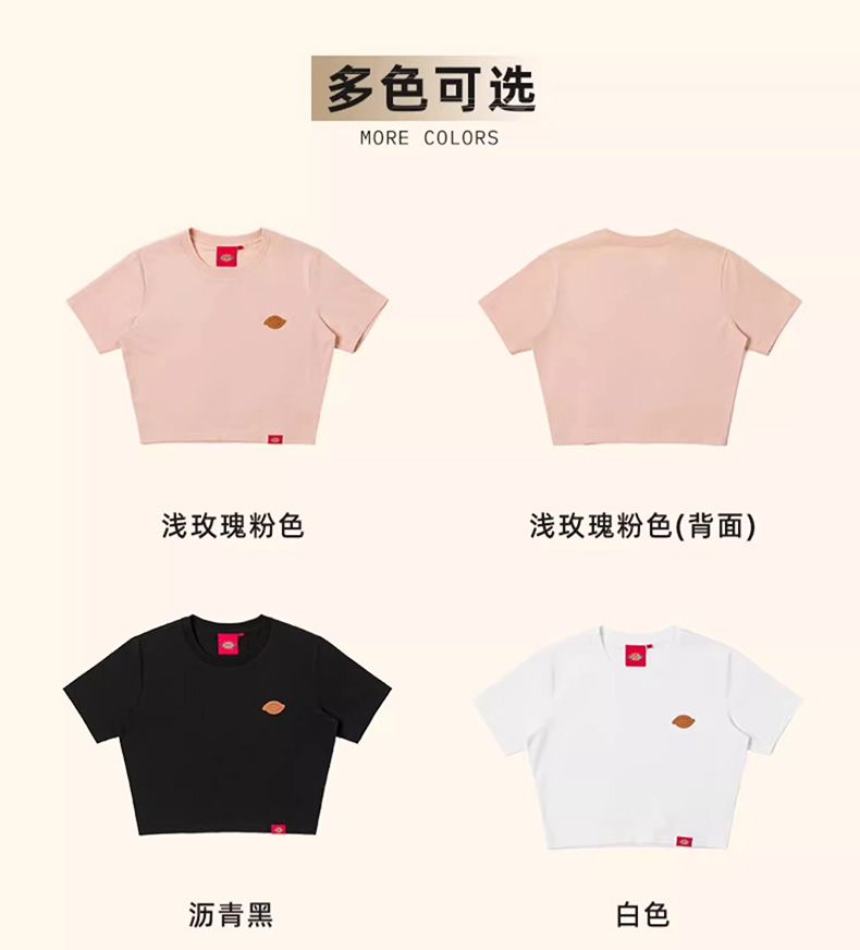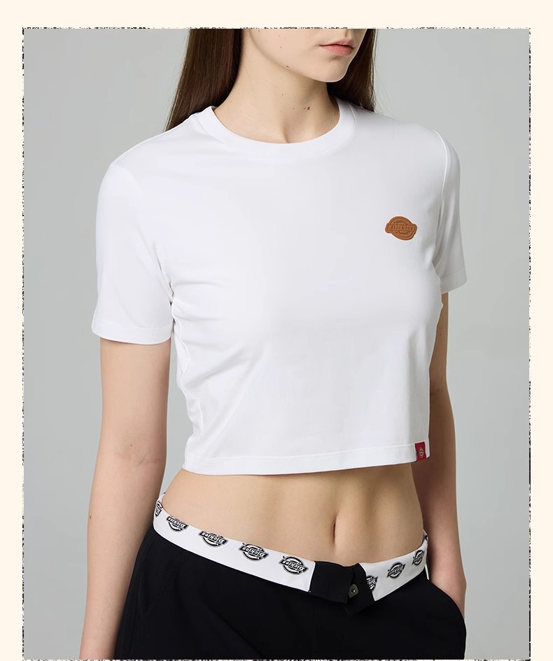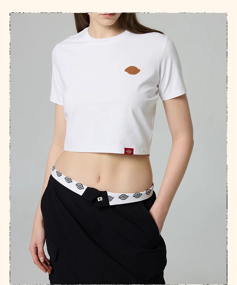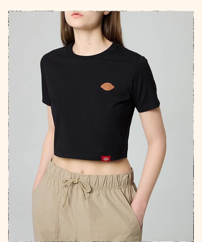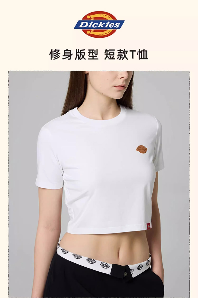 Dickies女式弹力修身短款T恤 前胸小LOGO印花 DK0A88E9