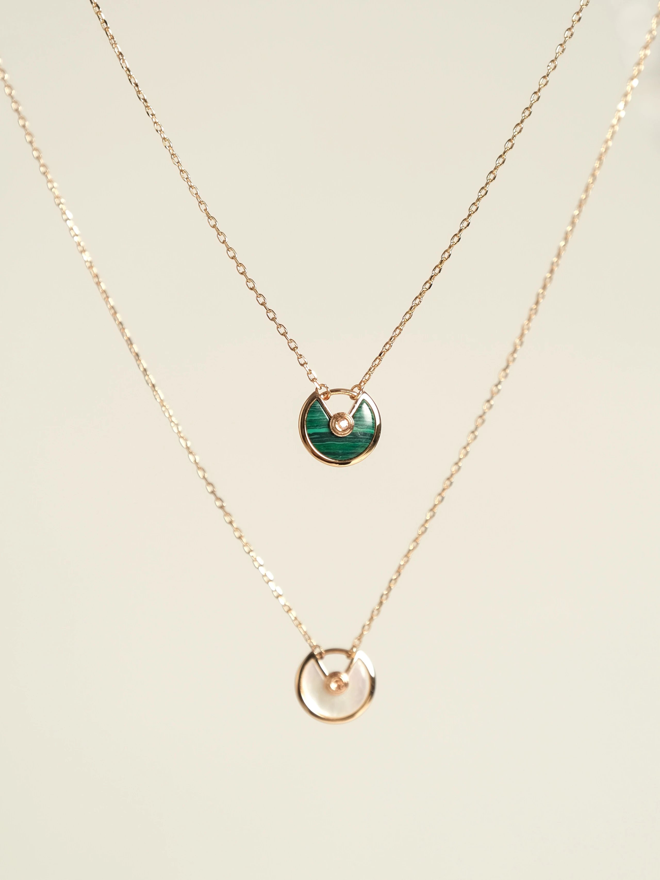 圆润的整体采用cnc精雕完成,一对一配拖车石,宝石与金属对比鲜明而又融为一体,衬托中间的钻石更加耀眼夺目❗️ 护身符,卡家经典飞碟守护项链z制,绿色孔雀石,经典款,纯CNC精雕,每个角度都是立体的