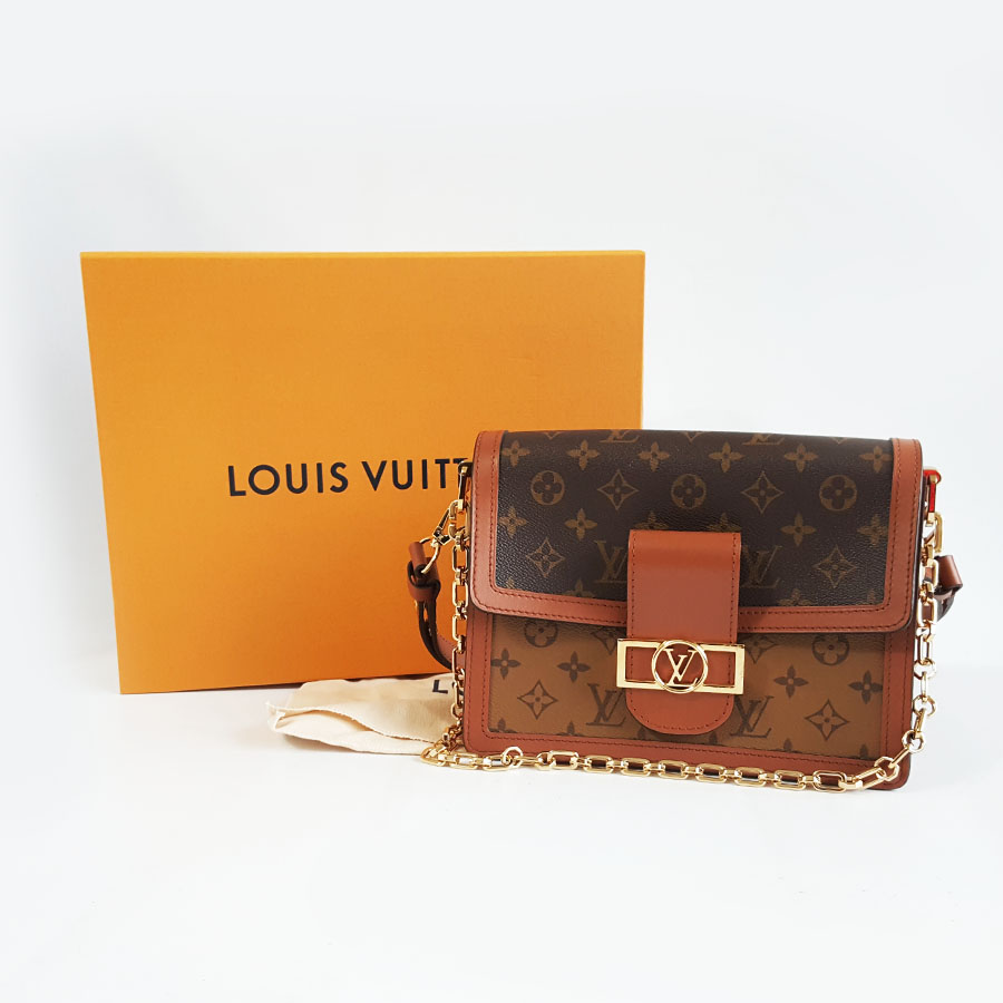 【95新】LV路易威登DAUPHINE系列M45958中号老花铜牌达芙妮链条包单肩包女士130326AK21