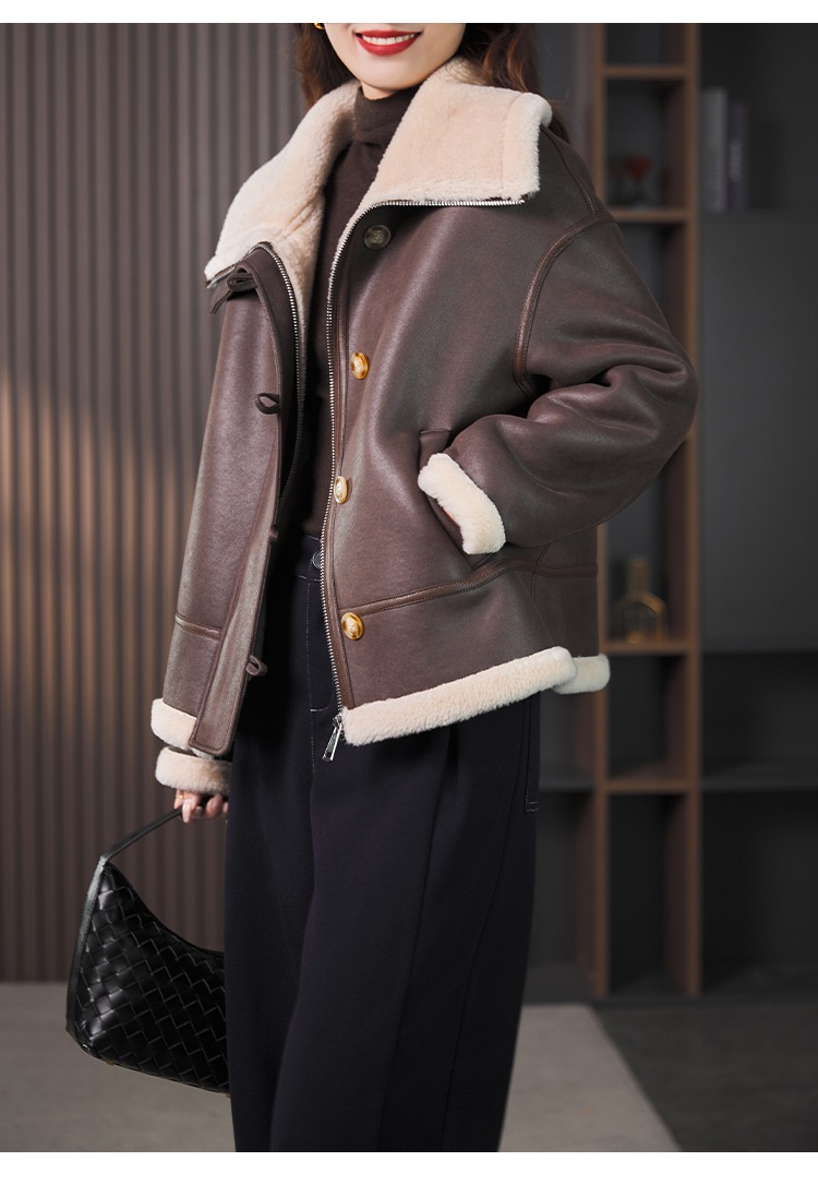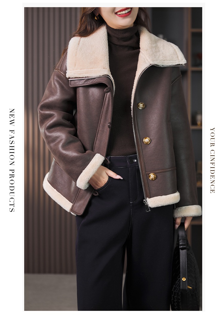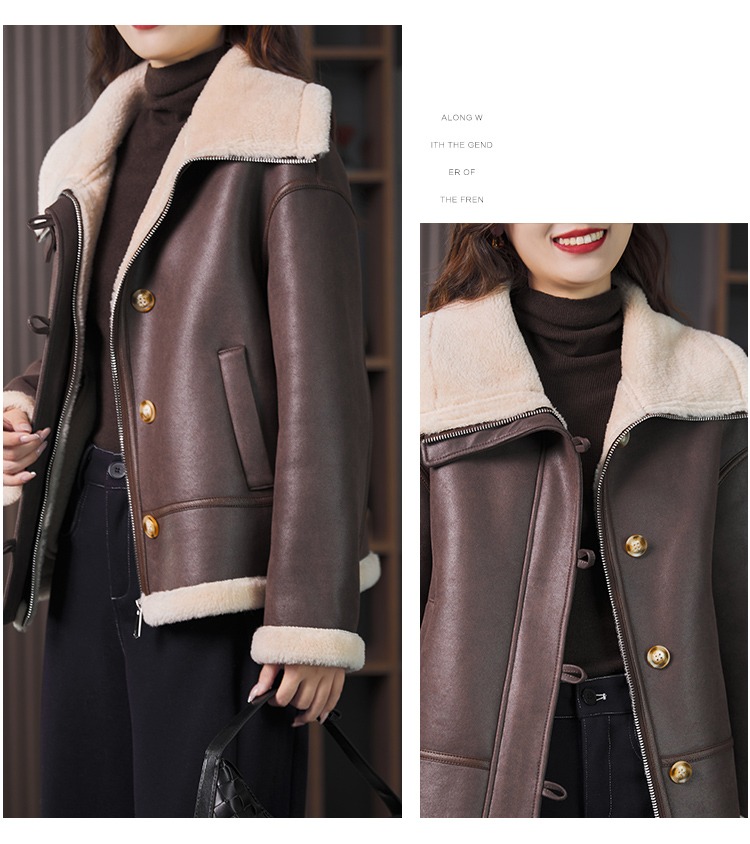 原形美拉德羊羔毛外套女短款保暖2023冬季新款韩版羊剪绒皮草大衣