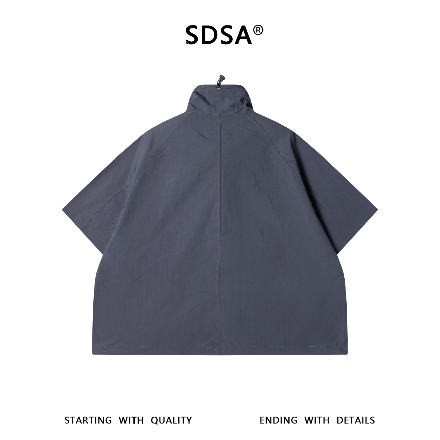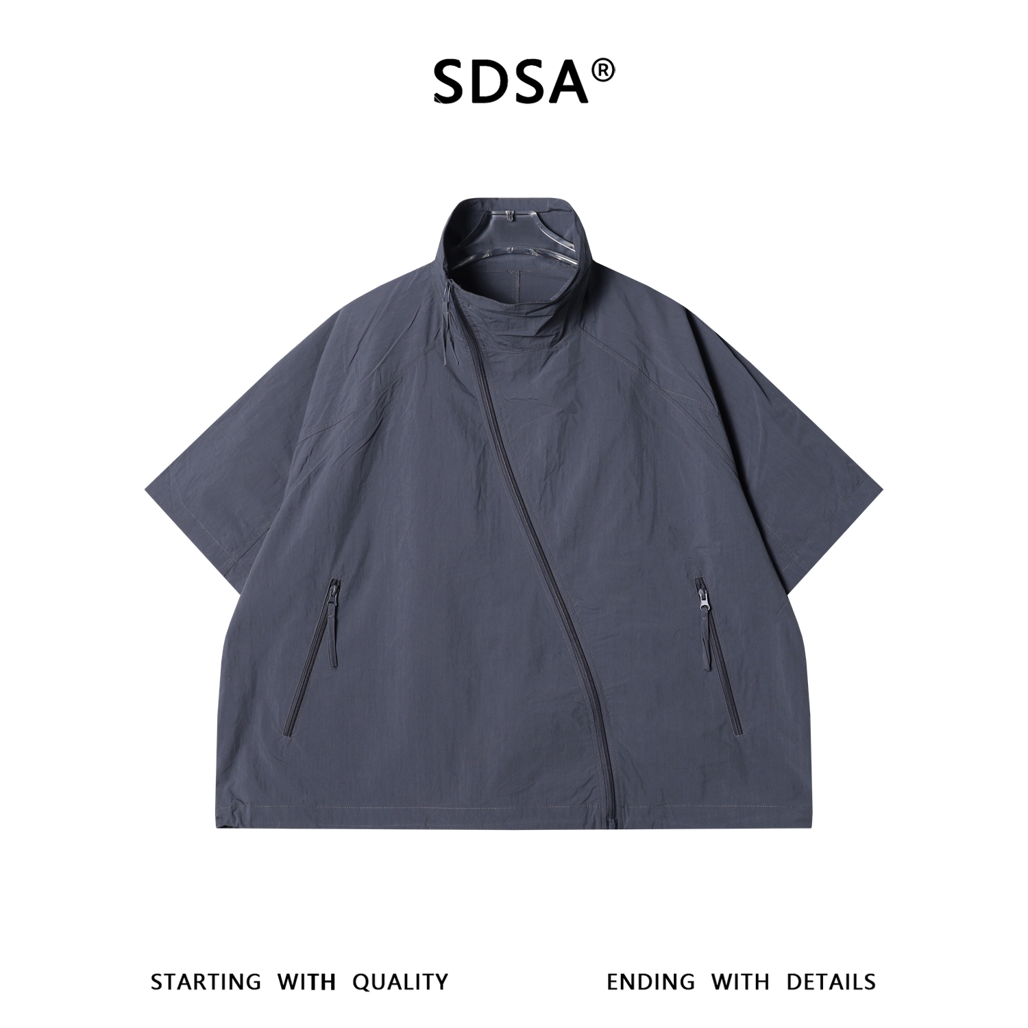 SDSA男装2026新款高贵轻奢潮牌纯色斜拉链立领短袖衬衫外套百搭
