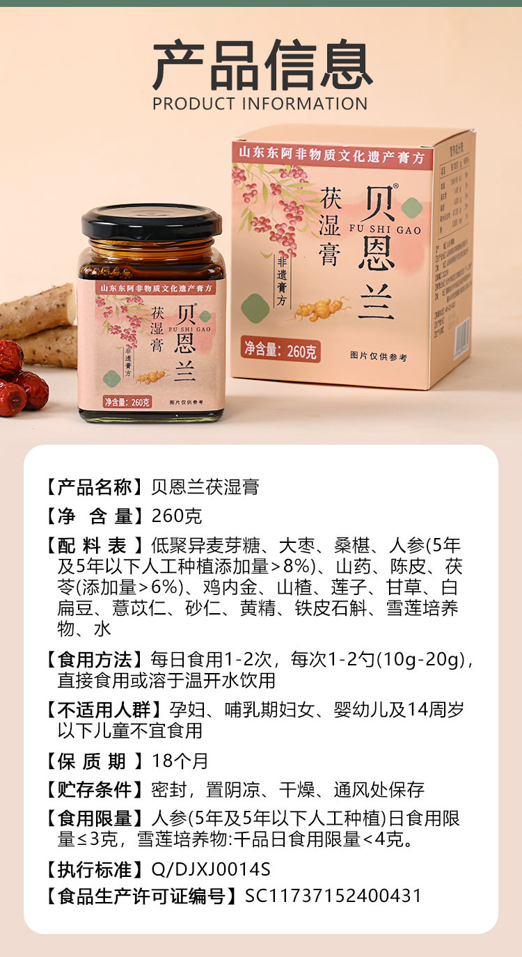 贝恩兰茯湿膏草本膏浓缩现熬伏湿膏滋补贝恩兰伏诗膏官方旗舰店