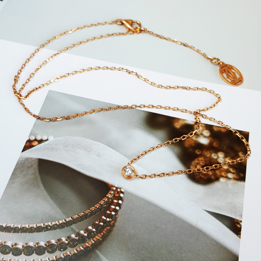 【95新】Cartier卡地亚Cartier d'Amour系列B721570018K玫瑰金小号9分单钻飞碟项链161224NJT18 现售价:5100