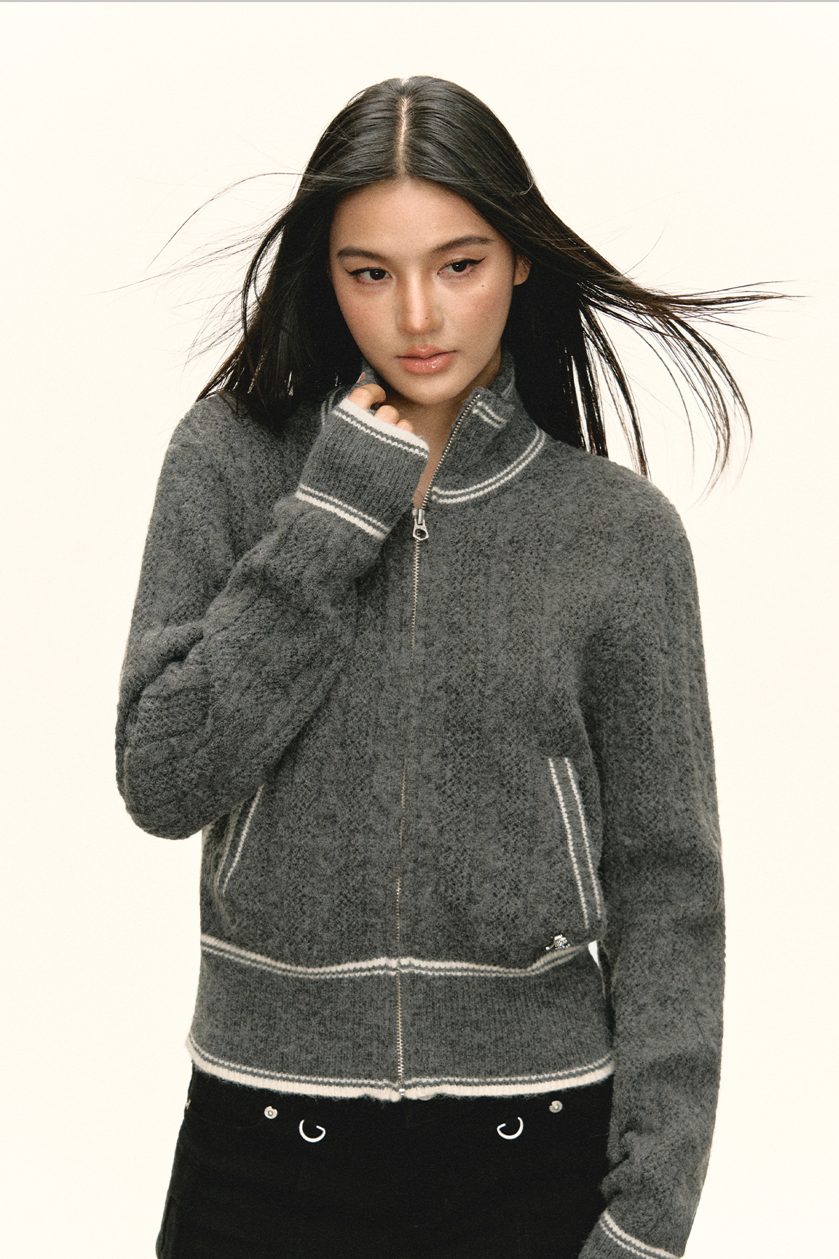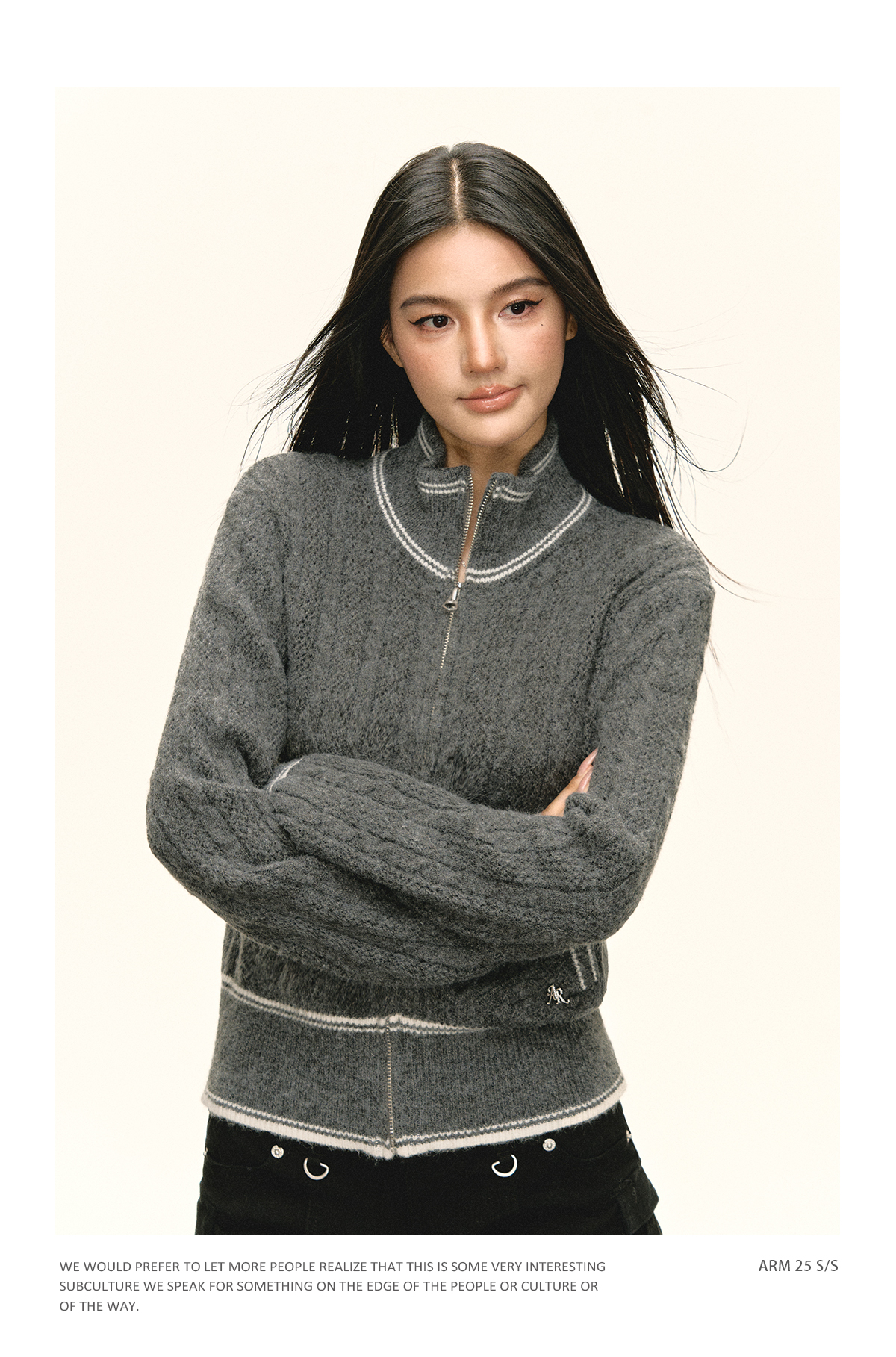 Ariseism 美式复古立领毛衣外套女秋季新款上衣