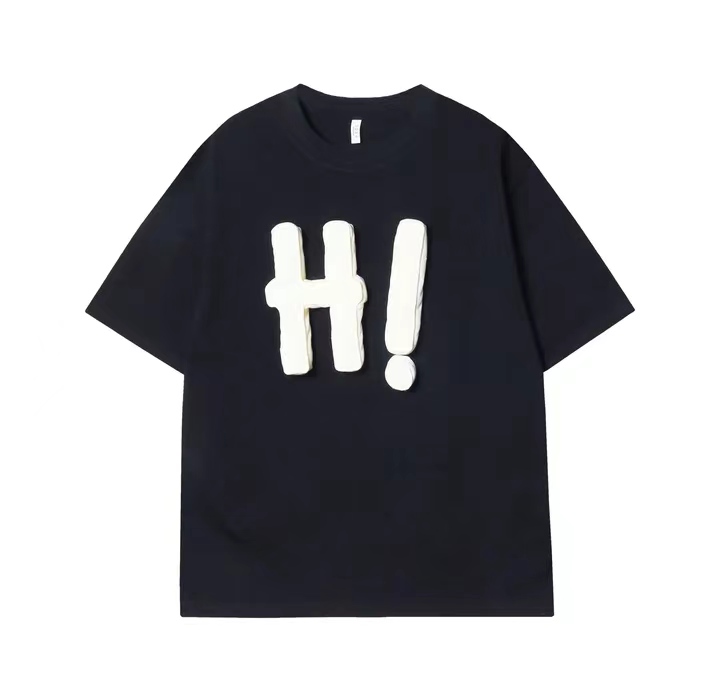 夏季新款立体HI字母时尚情侣宽松潮流圆领休闲百搭上衣