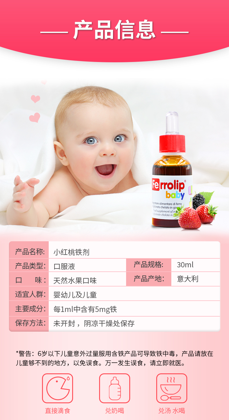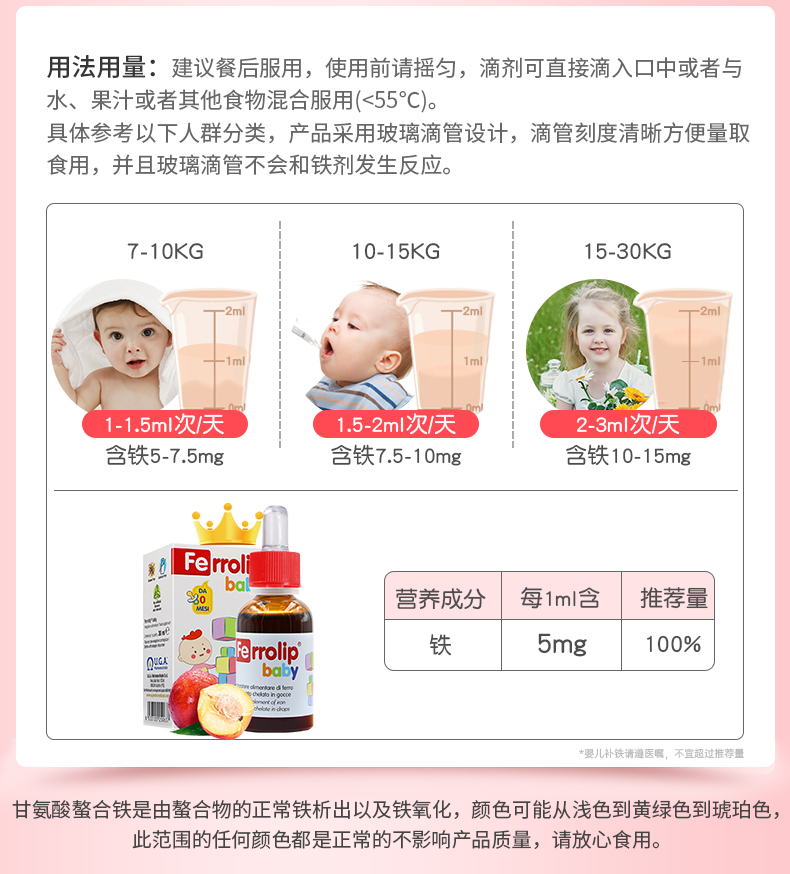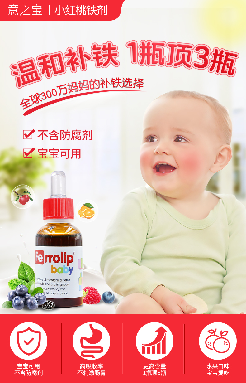 【团长专属】意之宝小红桃铁婴幼儿补铁宝宝铁滴剂新生儿螯合铁缺铁补铁儿童30ml/瓶