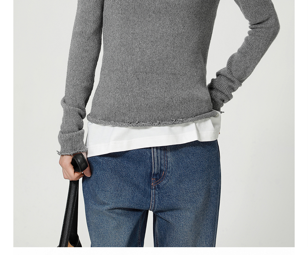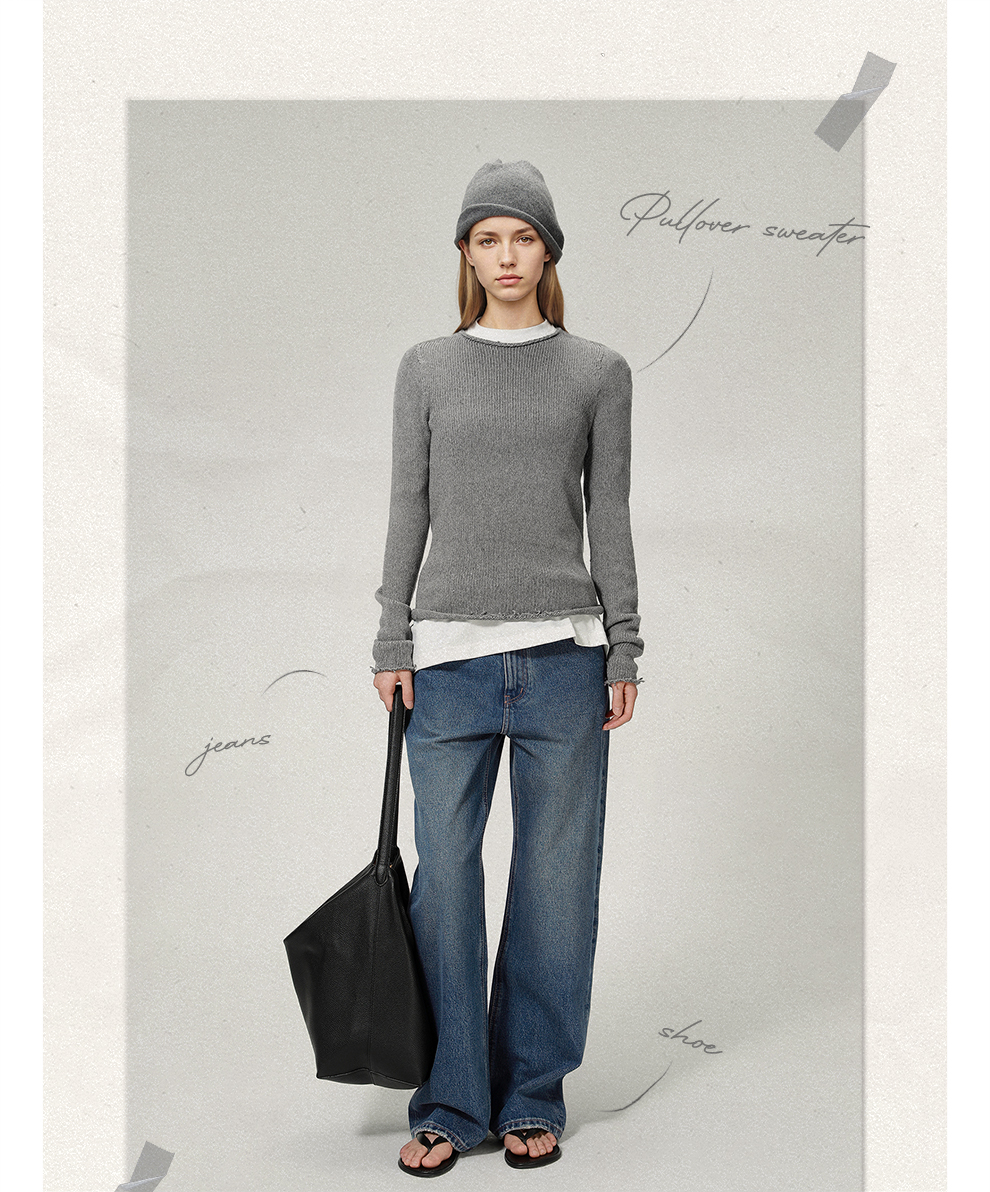 ROMI STUDIO“松弛随性”绵羊毛棉混纺圆领卷边套头毛衫 RWBWST1518